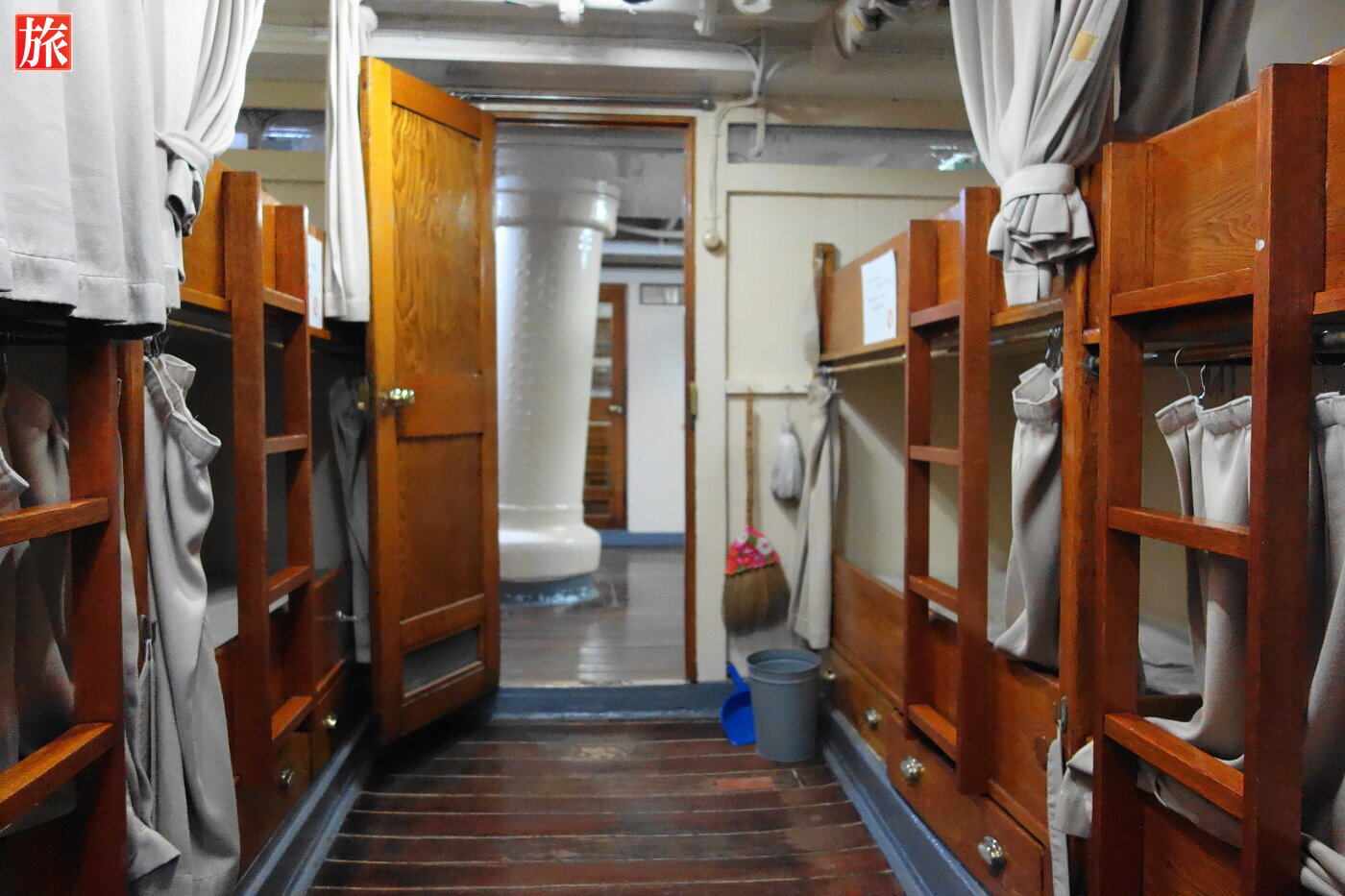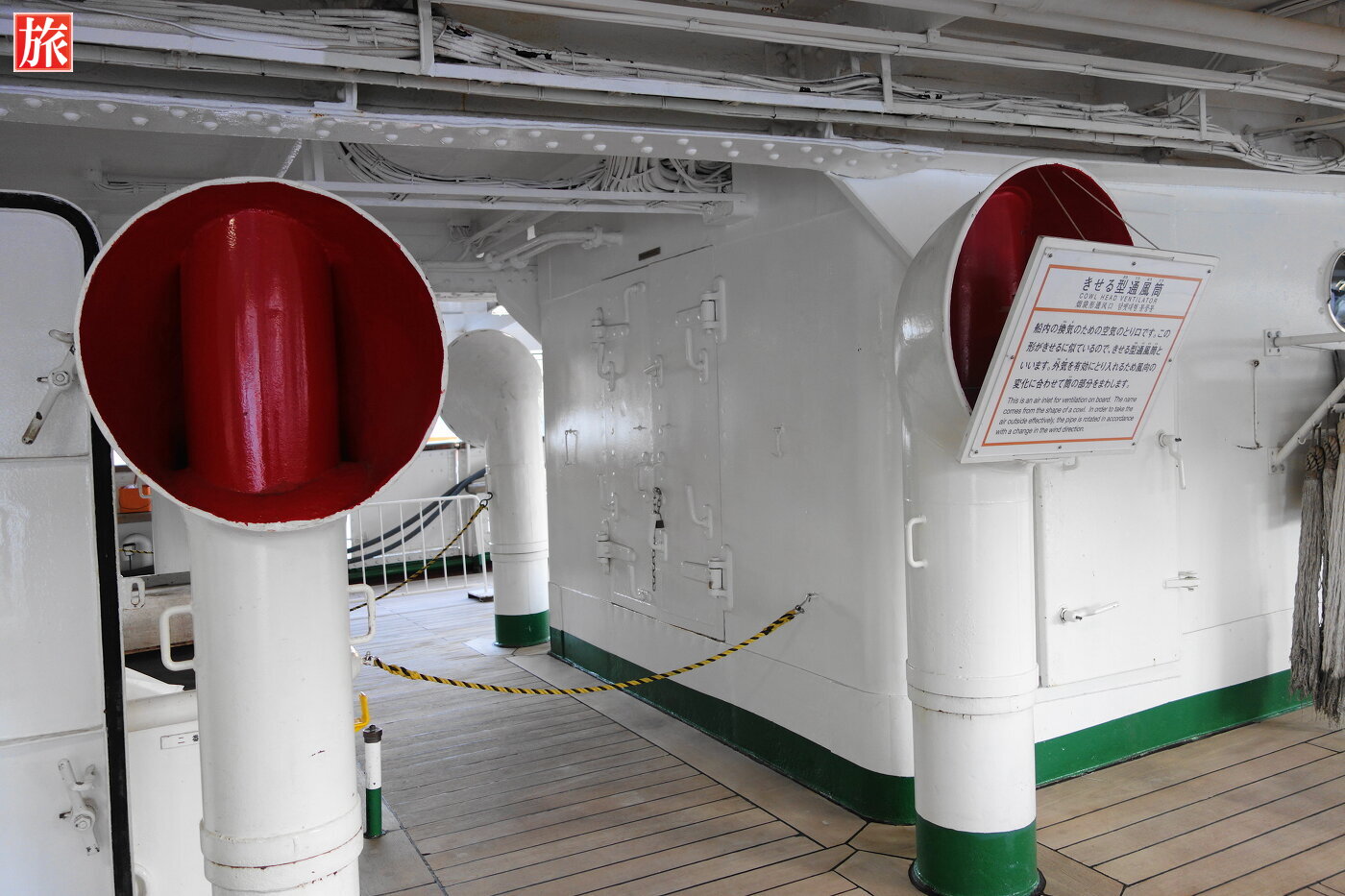 フォアマスト。キセル型通風筒。実習生の部屋(8人部屋)。