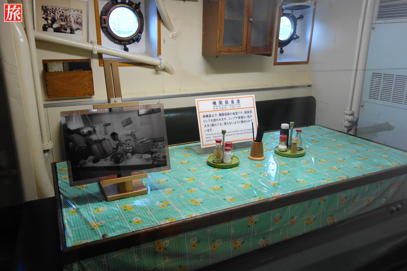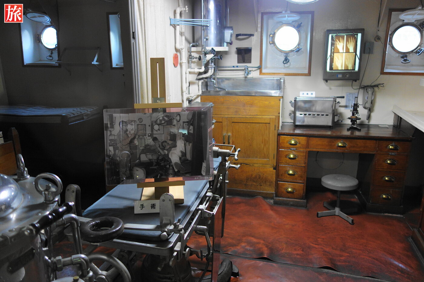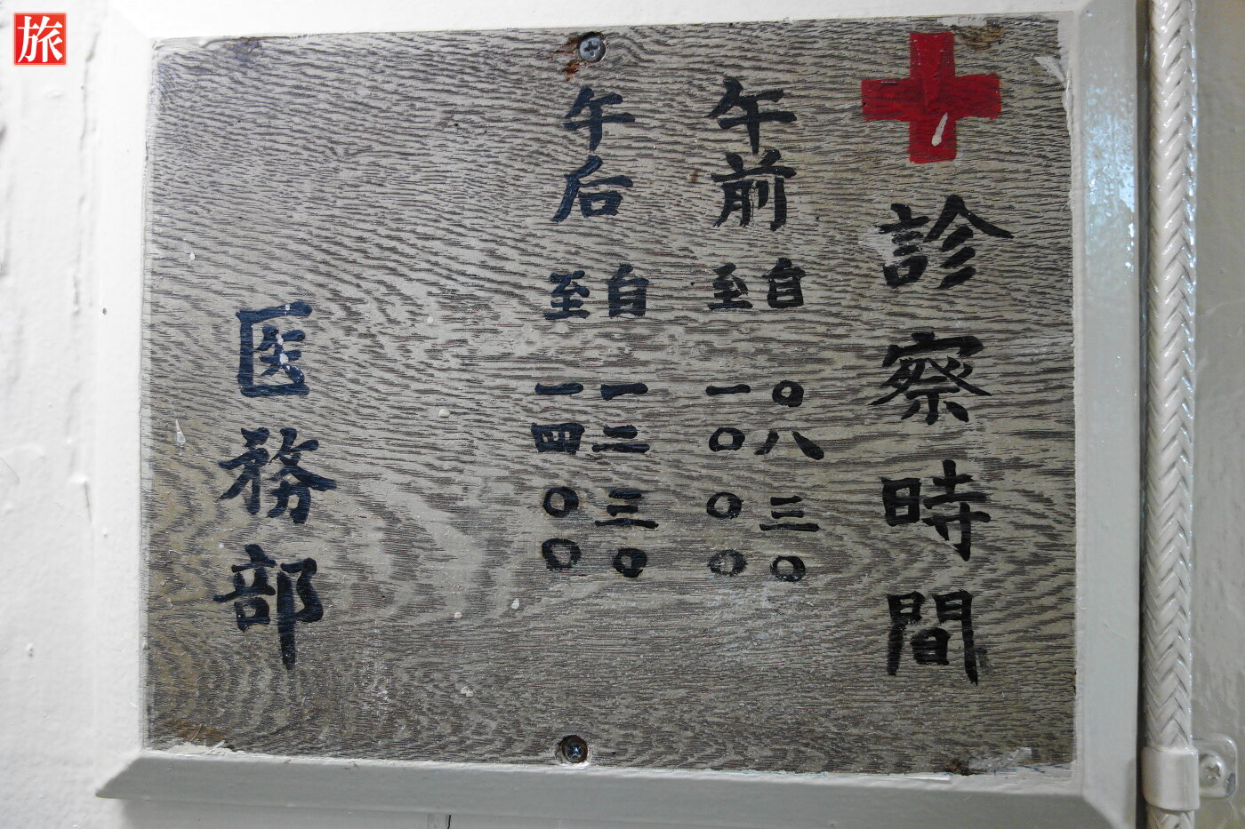 診療時間の看板。医務室。機関部食堂。