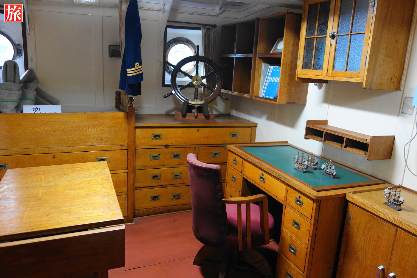 一等航海士室。通信長室。士官サロン。一番奥中央が船長の席。