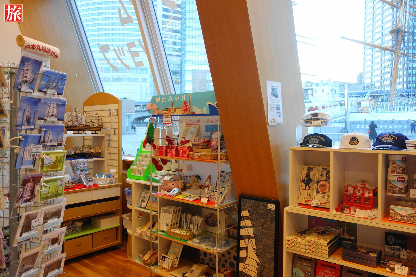 館内にあるミュージアムショップ。港や船に関する楽しいグッズや横浜みなと博物館オリジナル商品を販売しています。隣接したカフェ。