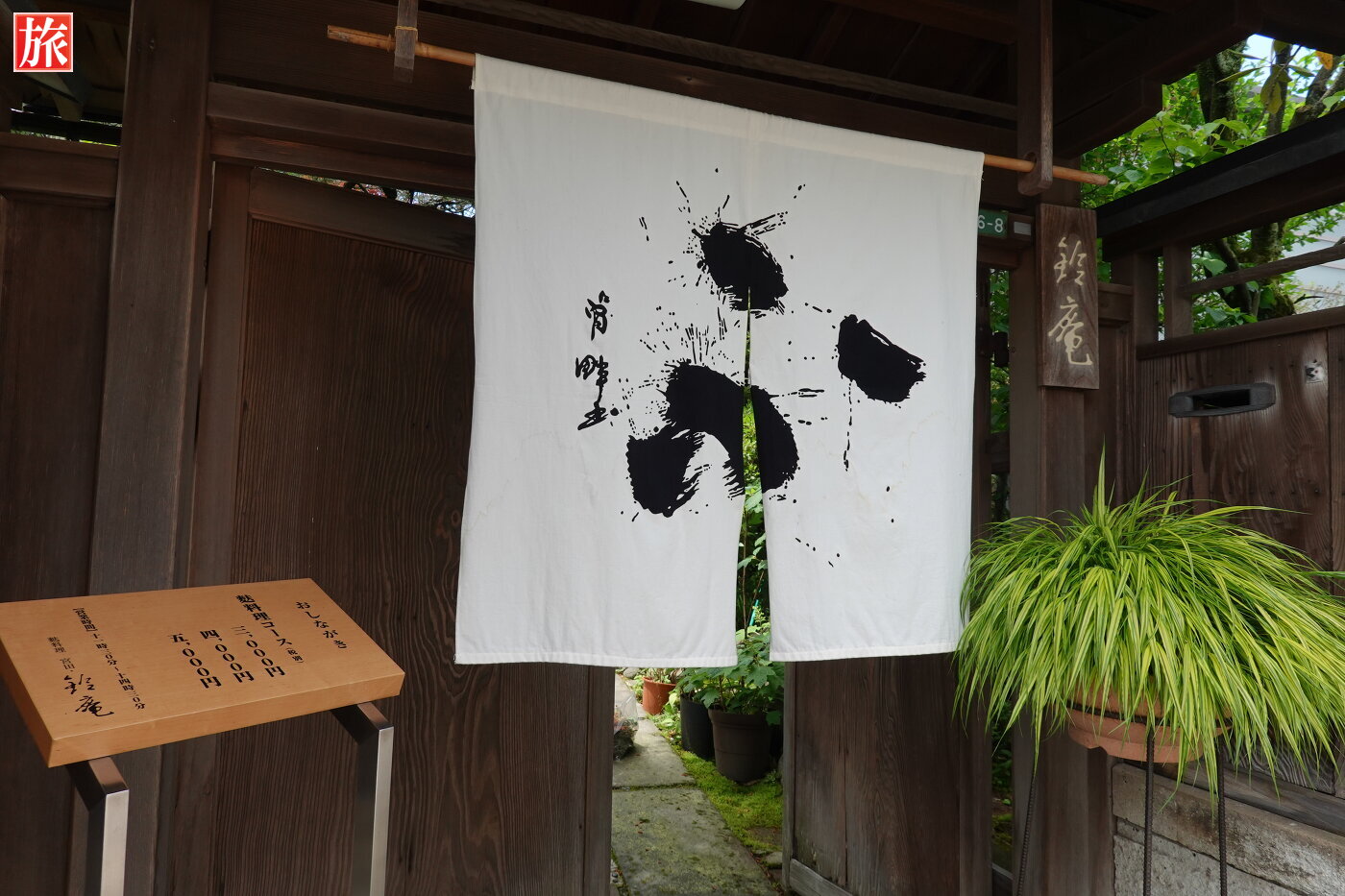 「ふ」の暖簾が目印。麸料理コースは・「三」のコース3,240円・「四」のコース4,320円・「五」のコース5,400円があります