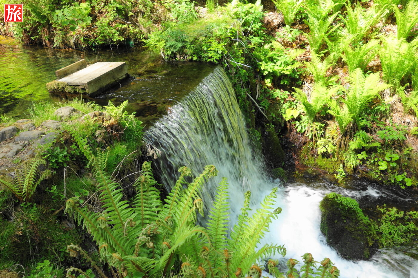 全景が庭園風のたたずまいで、清涼感にあふれマイナスイオンをたっぷり浴びられます。今の季節は、新緑が目に優しく、清流とのコントラスト素晴らしかったです。