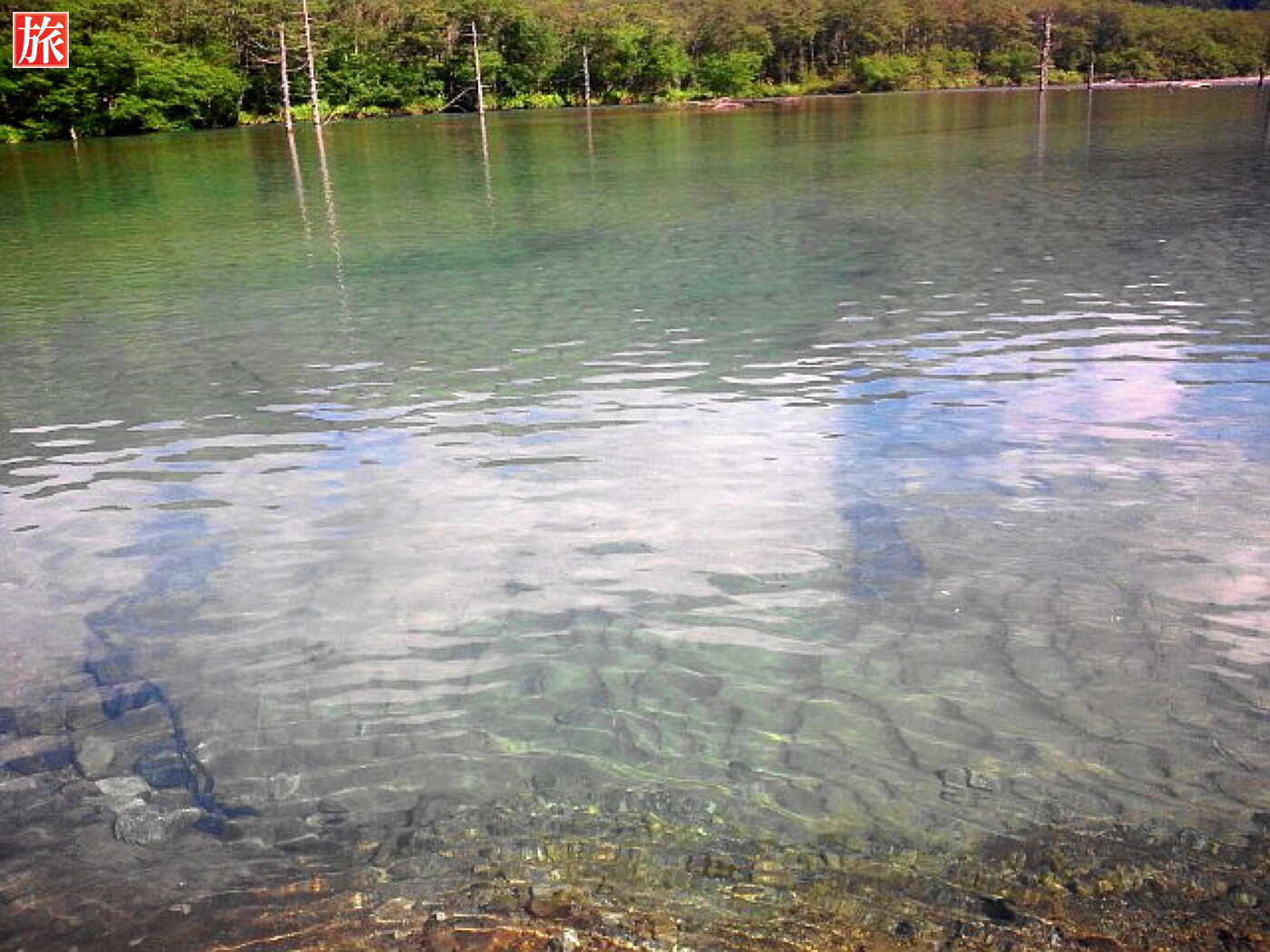大正池の水は澄んでいました。木漏れ日が心地いい!大正池を左手に梓川を上流に向かいます。