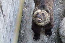 いきなり小熊がお出迎え。よく動く、かわいい。
