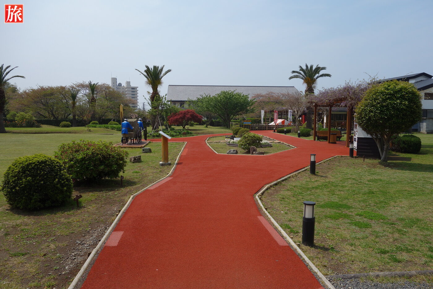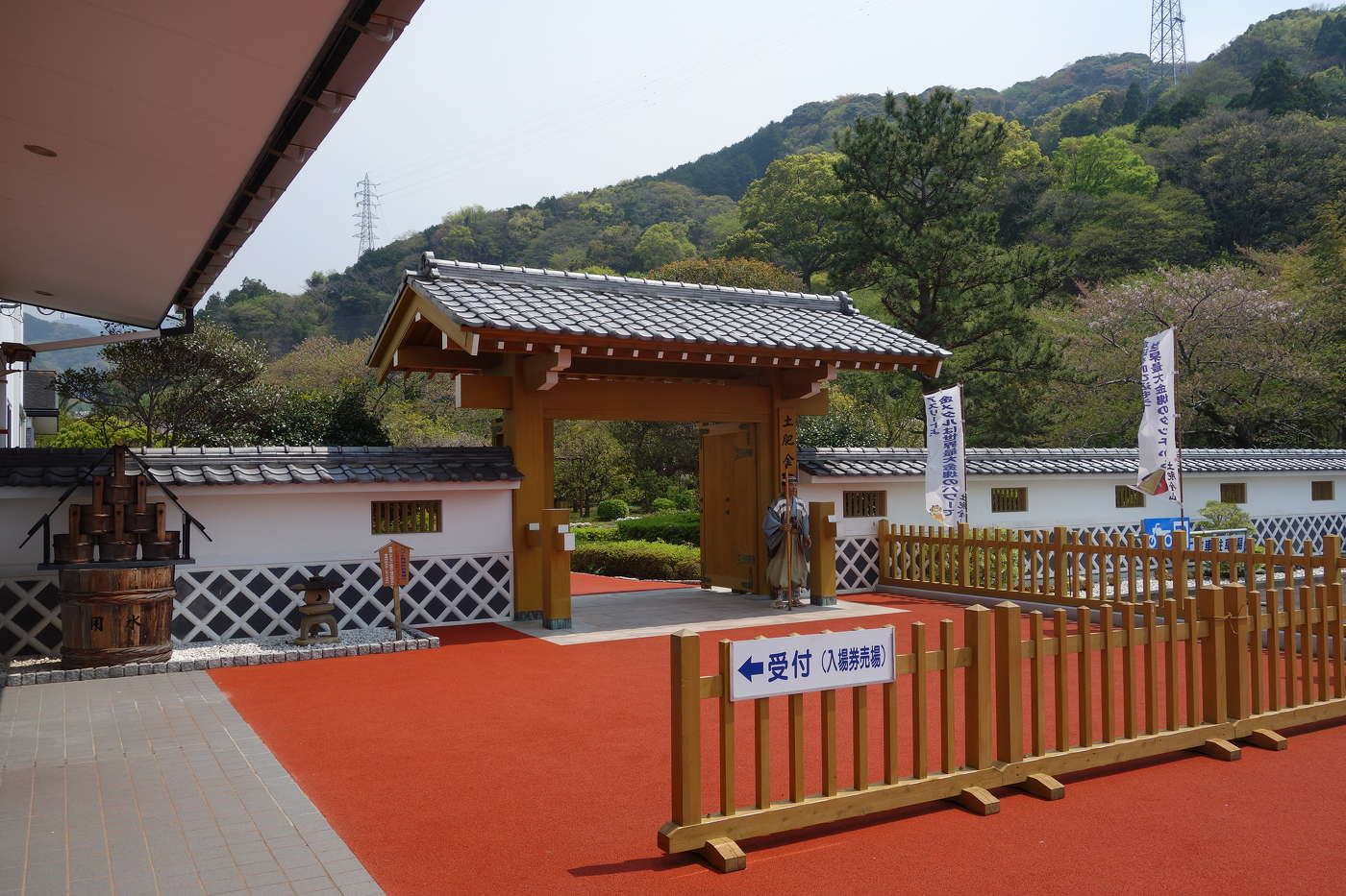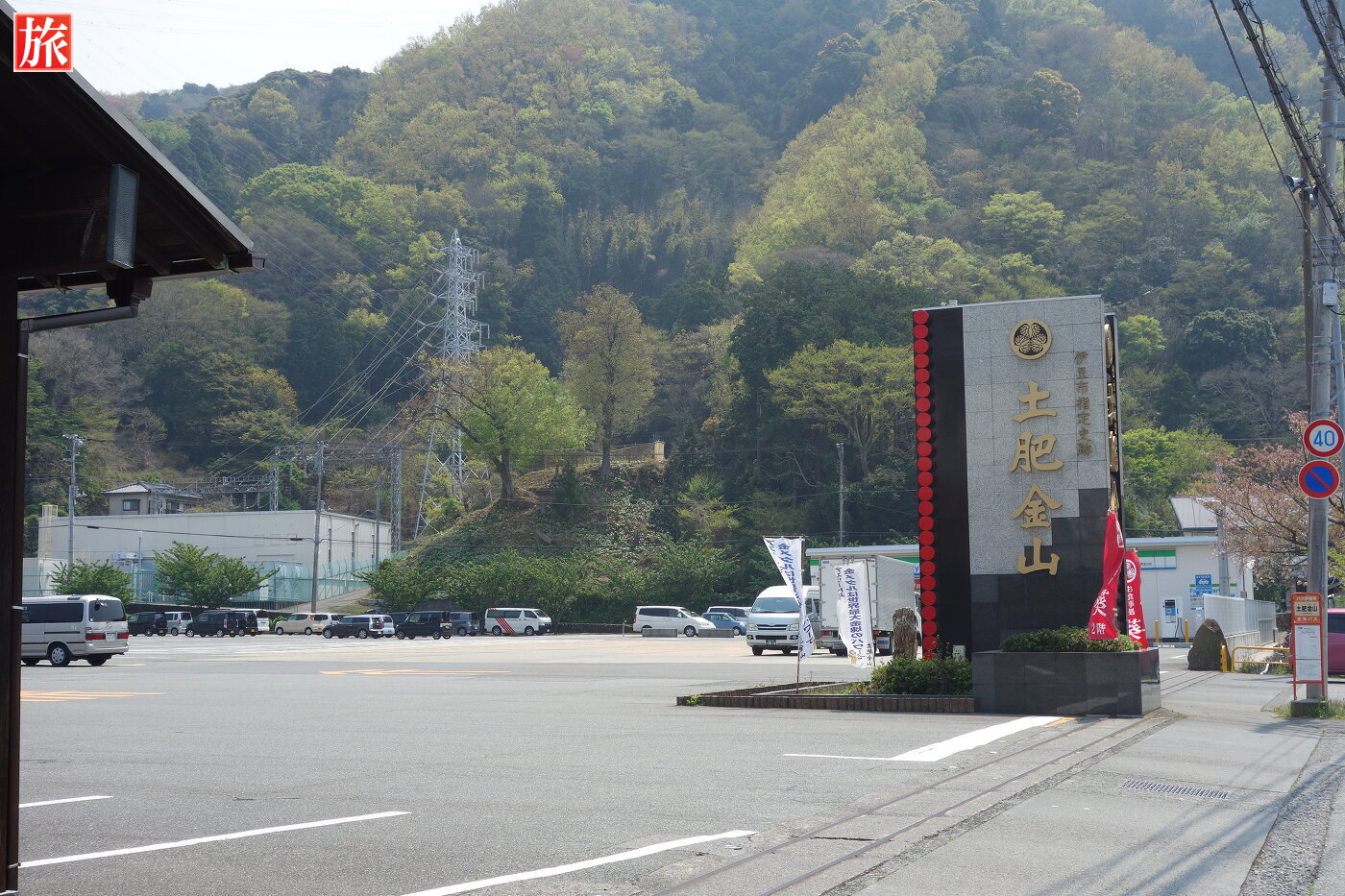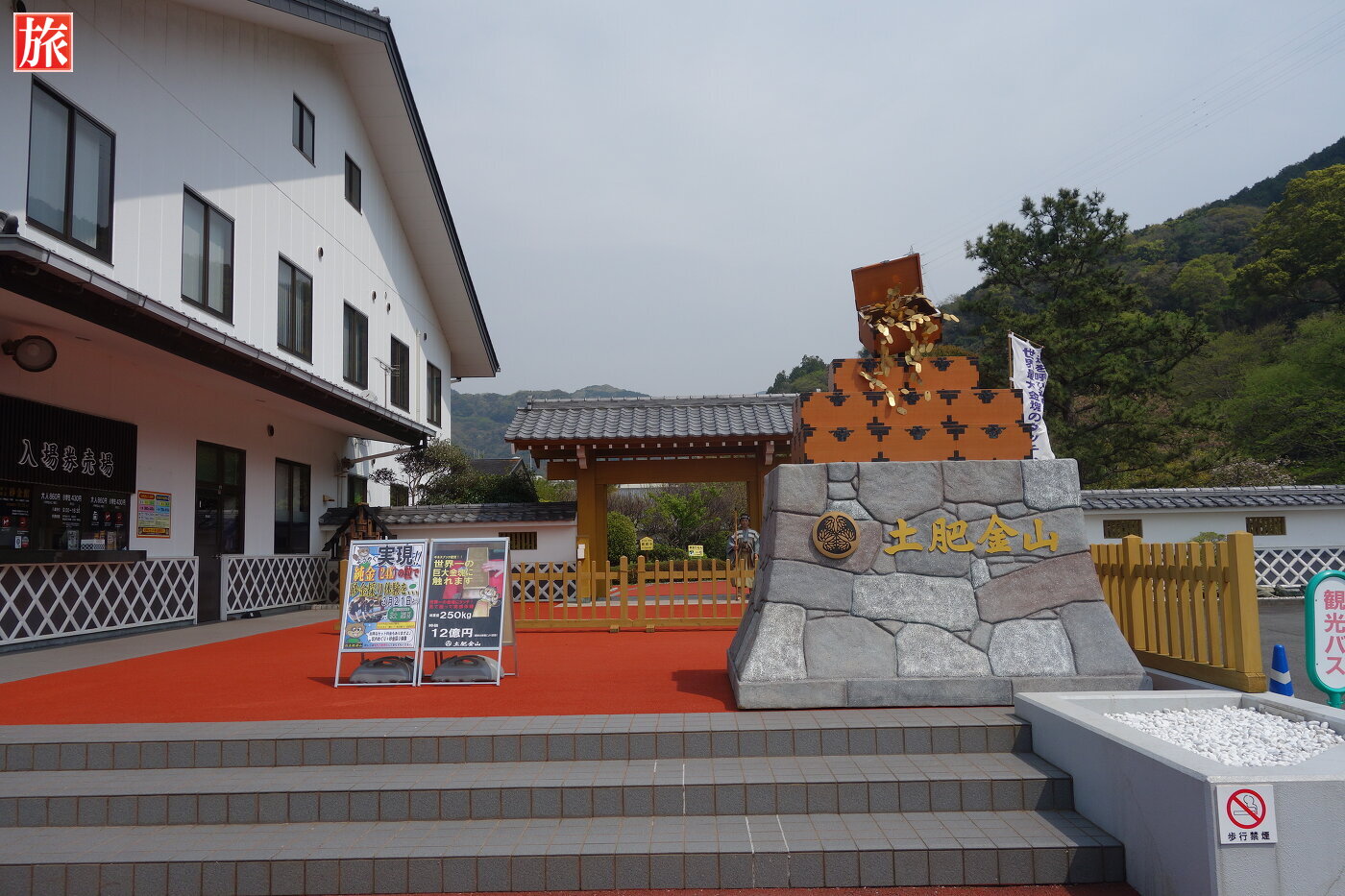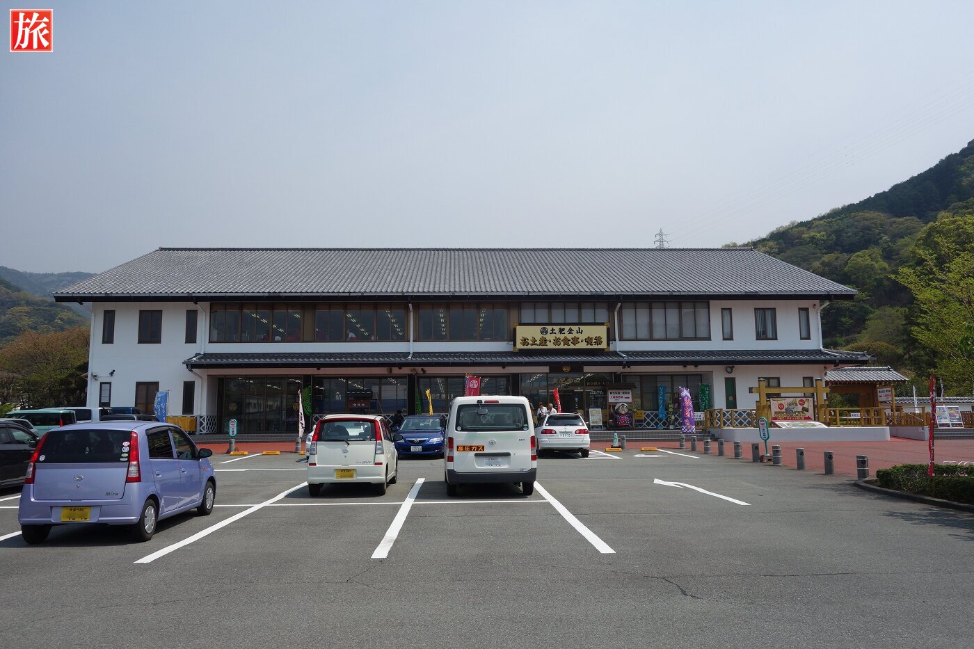 土肥金山に到着!駐車場の様子。正面に本館があります。観光坑内は右手の受付から入場します。