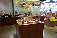 1/8の千石船(弁財船)。ここで掘られた金約40トン・銀400トンは、千石船で江戸に運ばれて、慶長大判・小判の地金にり利用されていたそうです。250kgの巨大金塊。出口付近では土肥金山オリジナルの銘菓が販売されています。