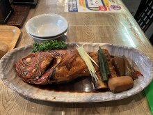 伊東駅近くの芸能人も足を運ぶ有名店。のれんに引き戸の純和風の外観や、店内の水槽で威勢よく泳ぐ魚に旨さへの期待も高まる。