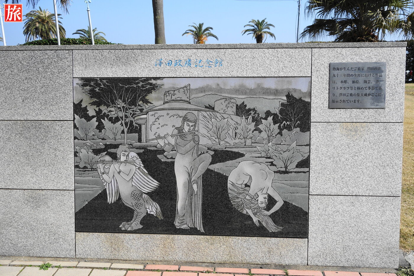 国道沿い壁に描いてあった伊豆山神社・澤田政廣などの説明。