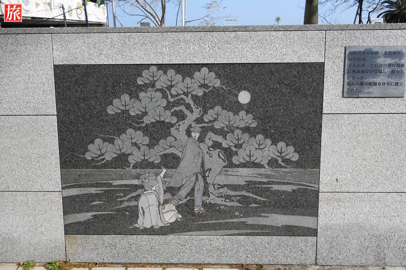 尾崎紅葉の代表作名作「金色夜叉」で貫一とお宮の別れのシーンに描かれた松として有名になった。
