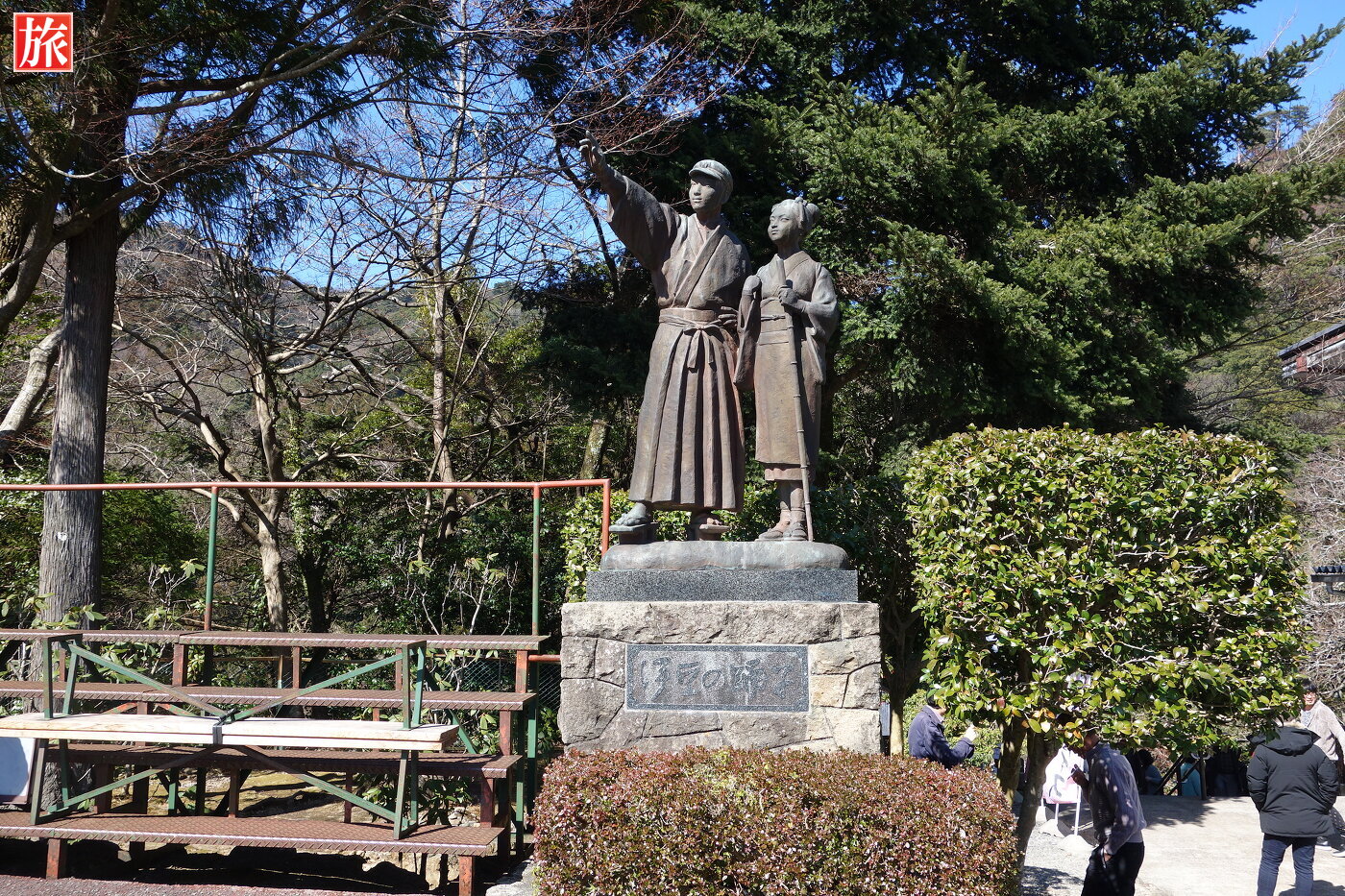 遊歩道入口にある伊豆の踊子像。浄蓮の滝資料館。浄蓮の滝。
