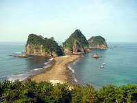 悲恋伝説が伝えられる三四郎島があり、トンボロ現象が見られるところで、干潮時には歩いて渡ることができる。なお、三四郎島とは象の形をした象島を含め3島の総称。