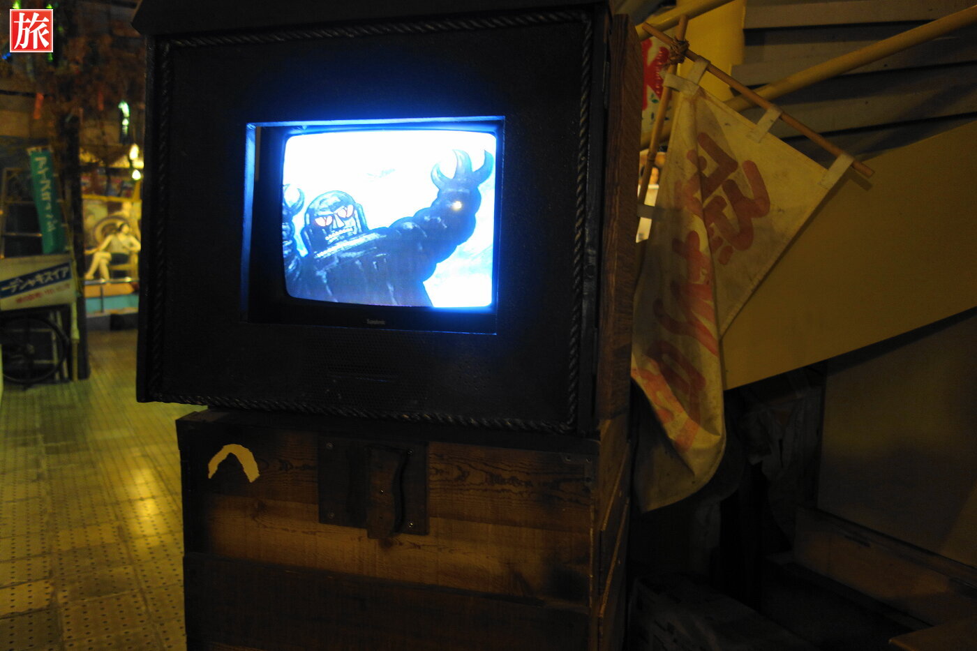 懐かしい紙芝居を再現したテレビ・・・2階エリアに白蛇神社が鎮座。エイリアンのフィギュア。