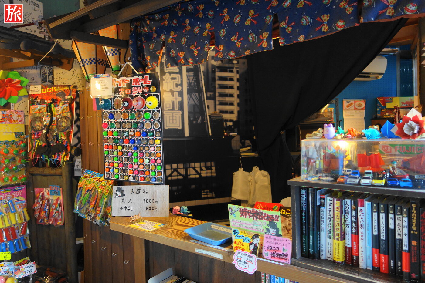 博物館入口。入場料、大人一人1000円です。怪しい秘密基地 まぼろし博覧会の入口付近もそうでしたが、(株)データハウスさんが出版する「大人の本」などあまり目にすることがない本が並んでいます。