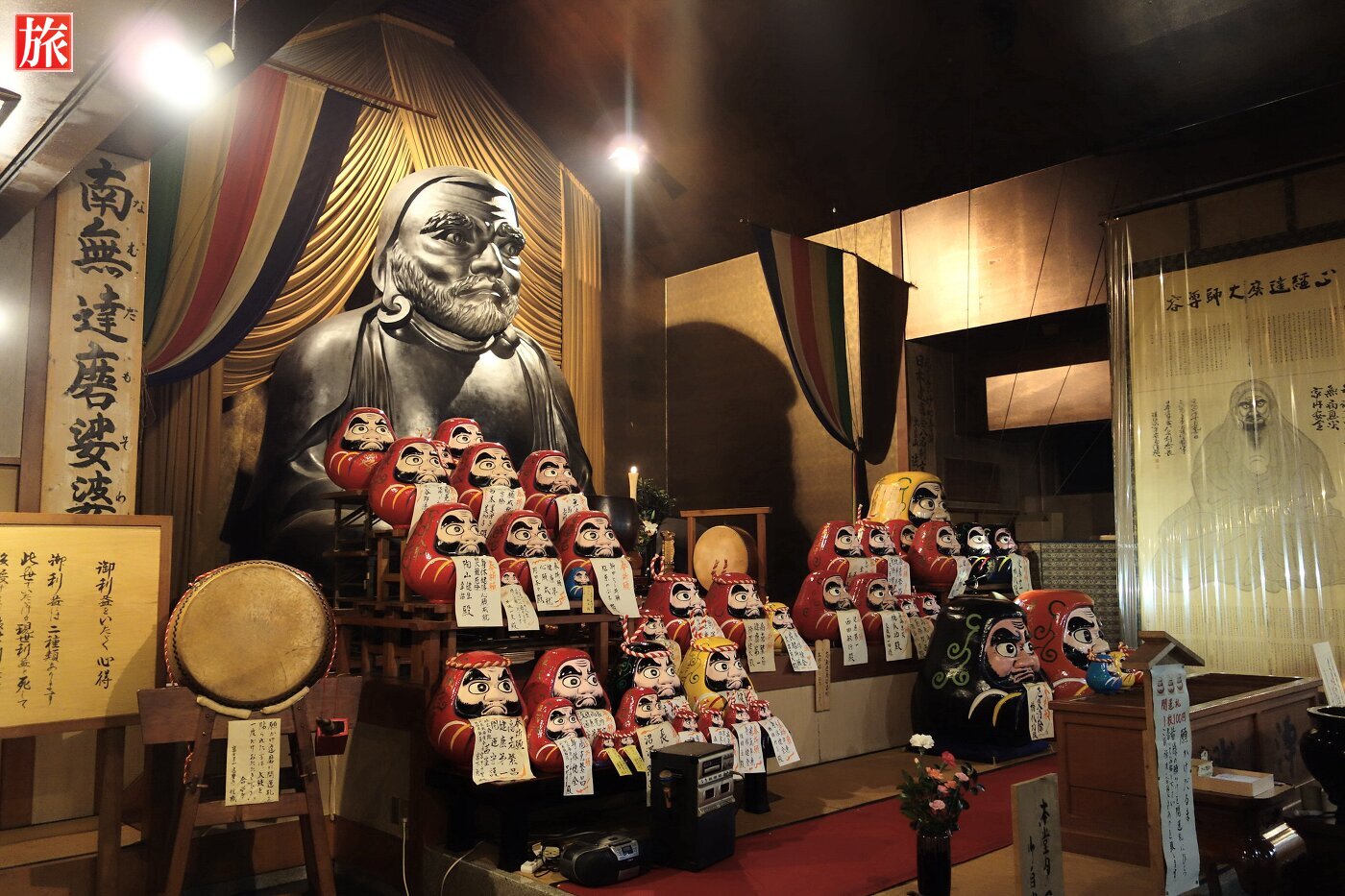 本堂には日本一大きい達磨大師像(高さ5m、重さ約3t)が安置されている。