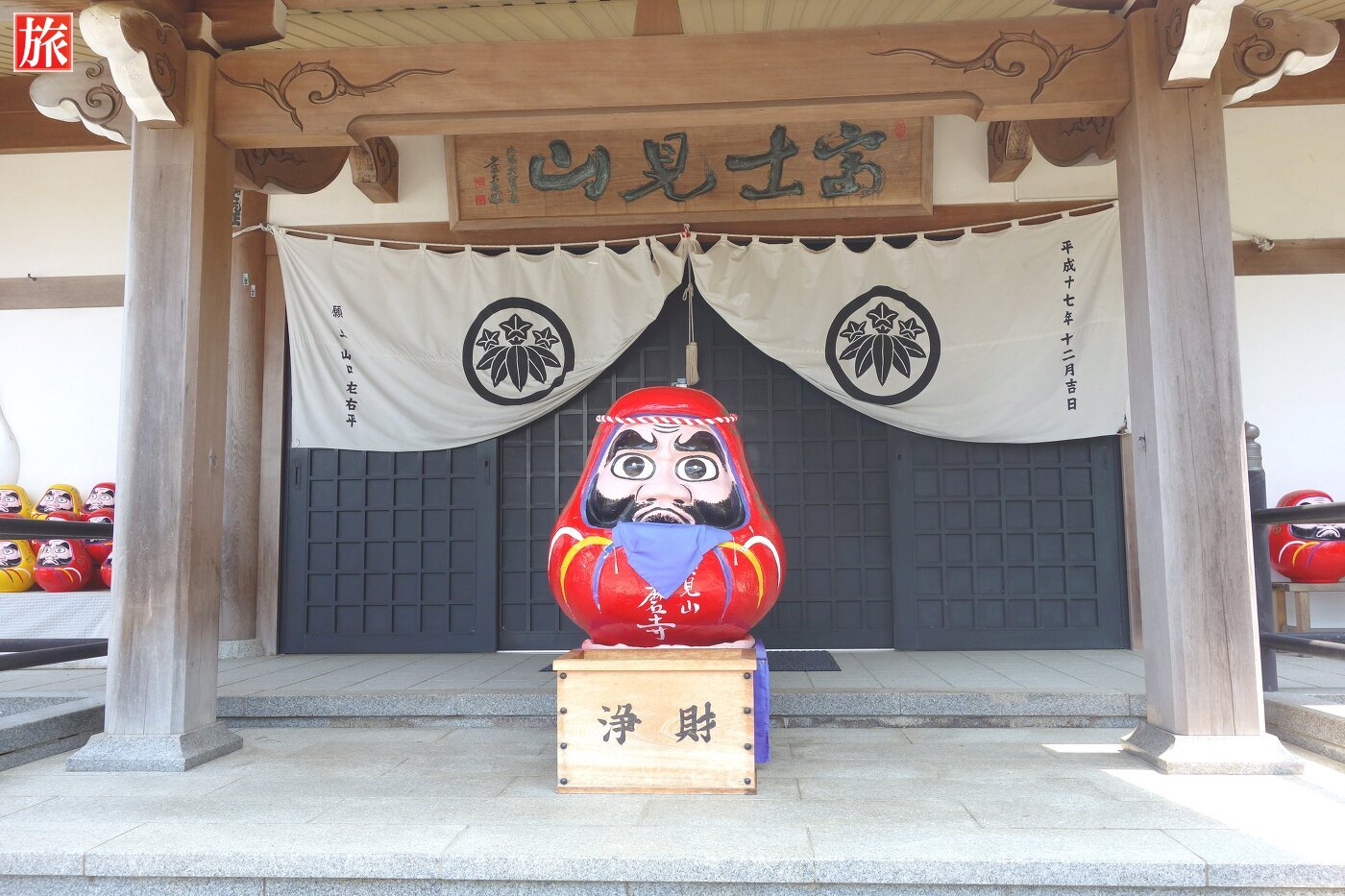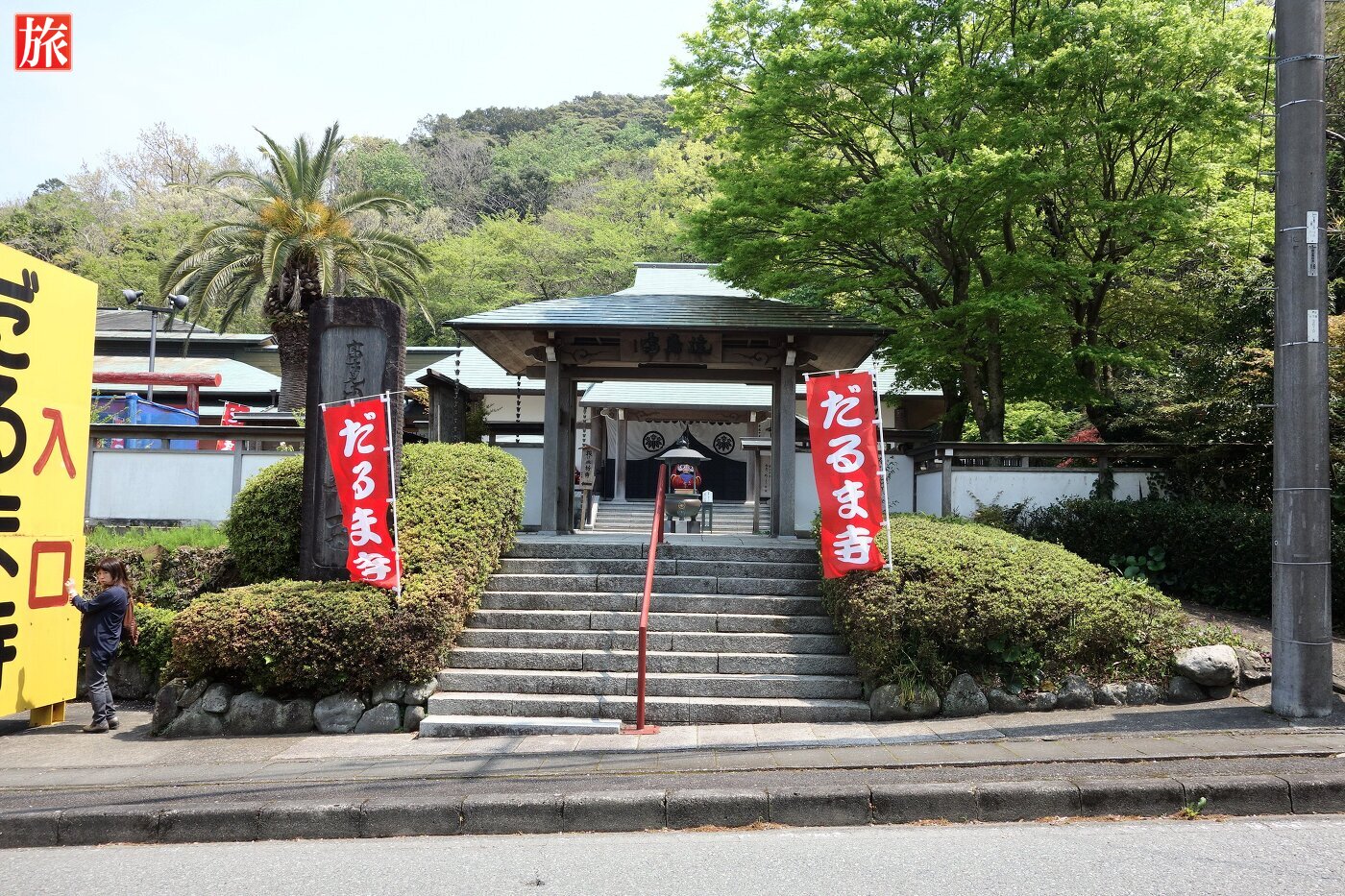 本堂には高さ5m、重さ3トン、座像では日本一大きい達磨大師像(は不死身達磨大師)がある土肥達磨寺。