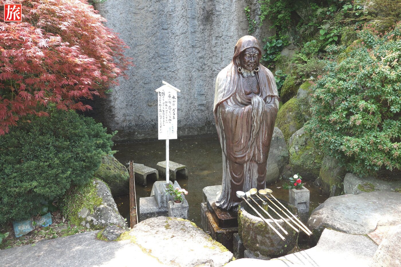境内にある「水かけ達磨」(忍行達磨大師)、体の調子の悪いところに水を掛け浄めて病気平癒を祈願します。「立ち達磨大師」は、足が丈夫な方だったと伝えられていて、達磨大師の足や衣をさすり健康を祈願します。本日は平日で空いていましたが、土・日曜日は観光バスも立ち寄り200人以上の拝観者が来るそうです。