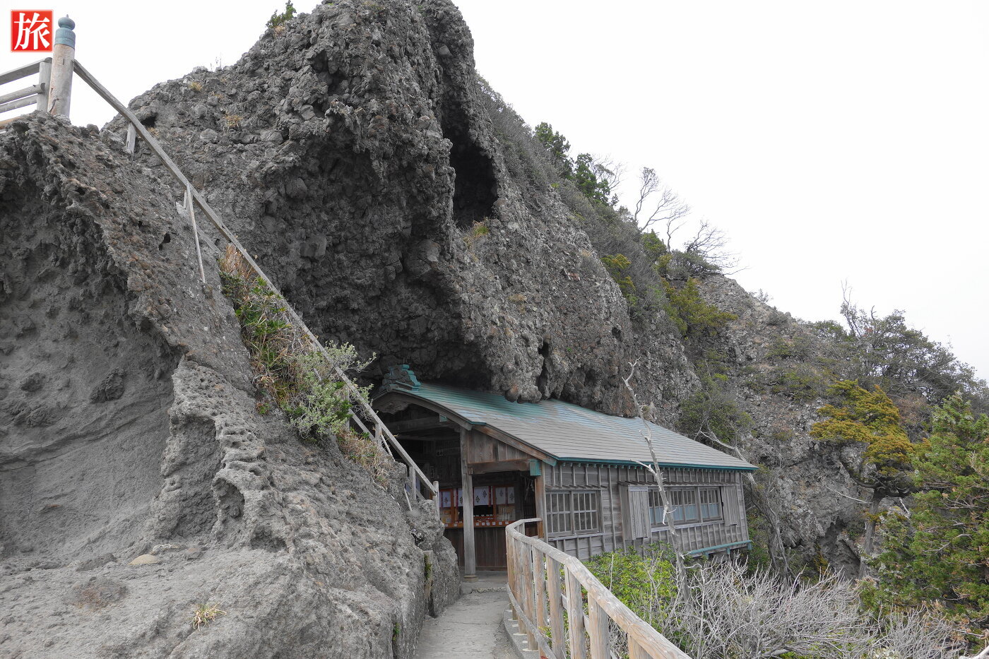 石室神社は岩と一体になったかのように・・帆柱を枕に断崖絶壁の上に建つ・・どうやって建てたのでしょうか?