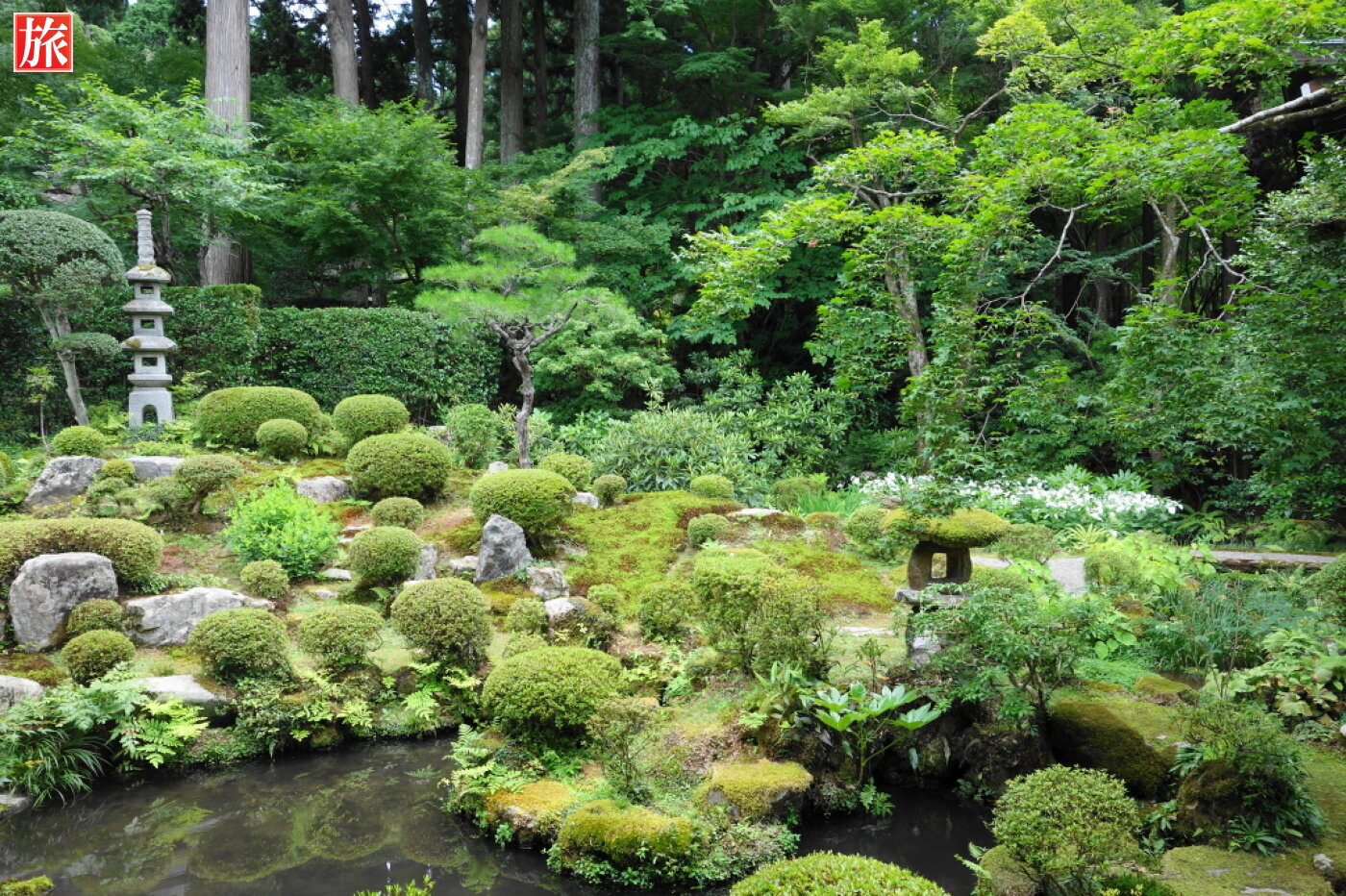 大原三千院 聚碧園は江戸時代の茶人・金森宗和の作で客殿の前に広がり、皐月の刈込が美しい。