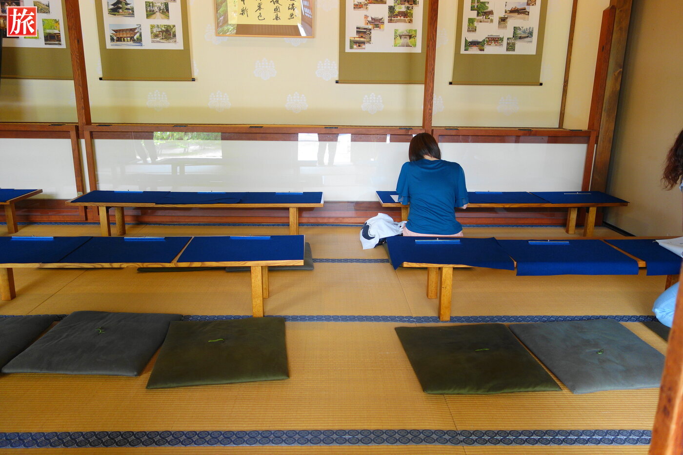 法堂の天井108畳にも及ぶ小泉淳作筆の天井画「双龍図」。「阿吽(あうん)」の龍となっています。