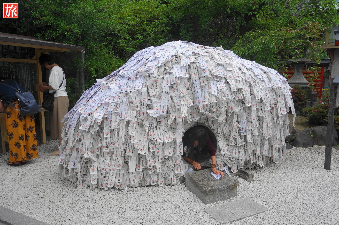 「安井のこんぴらさん」で知られる。高さ1.5メートル、幅3メートルの絵馬の形をした巨石に「形代」が貼ってある碑(いし)が目を引く。悪縁切り&良縁結びのパワースポット。