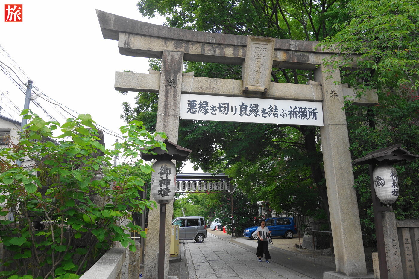 東大路通から向かいました。鳥居の下には「悪縁切り良縁結ぶ祈願所」の案内版が掲げてあります