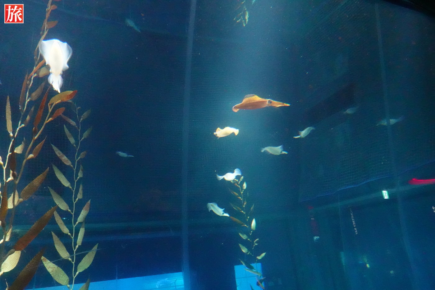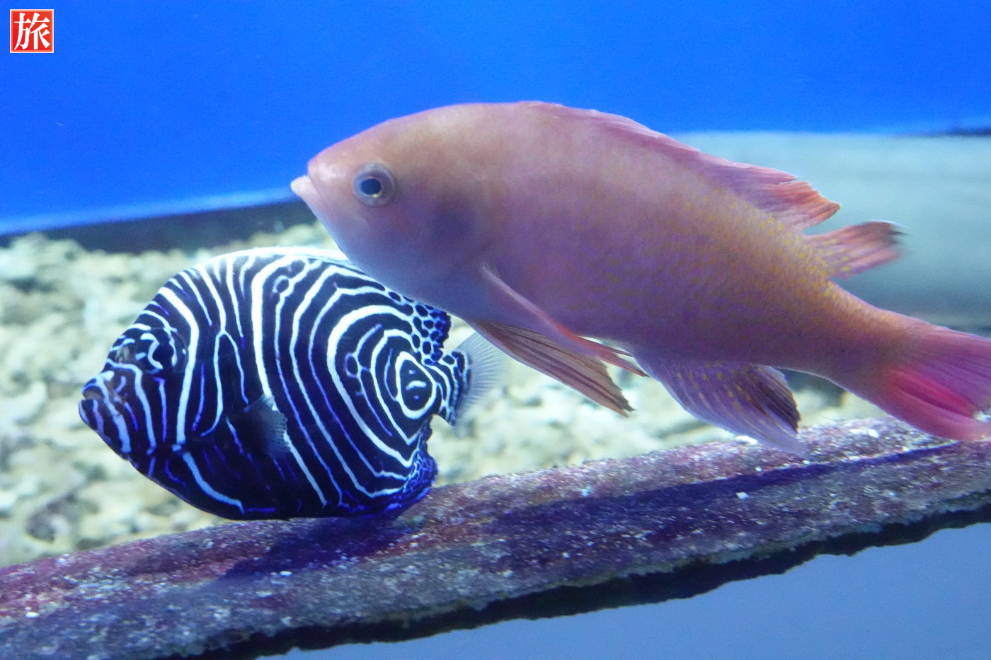 太平洋(最大長34m、深さ9m、水量5,400m³)ジンベエザメ、イトマキエイ、マダラトビエイ、アカシュモクザメ、シノノメサカタザメ、グルクマ、ネムリブカ、マサバ、ギンガメアジ、フエダイ、タマカイ、クエなど