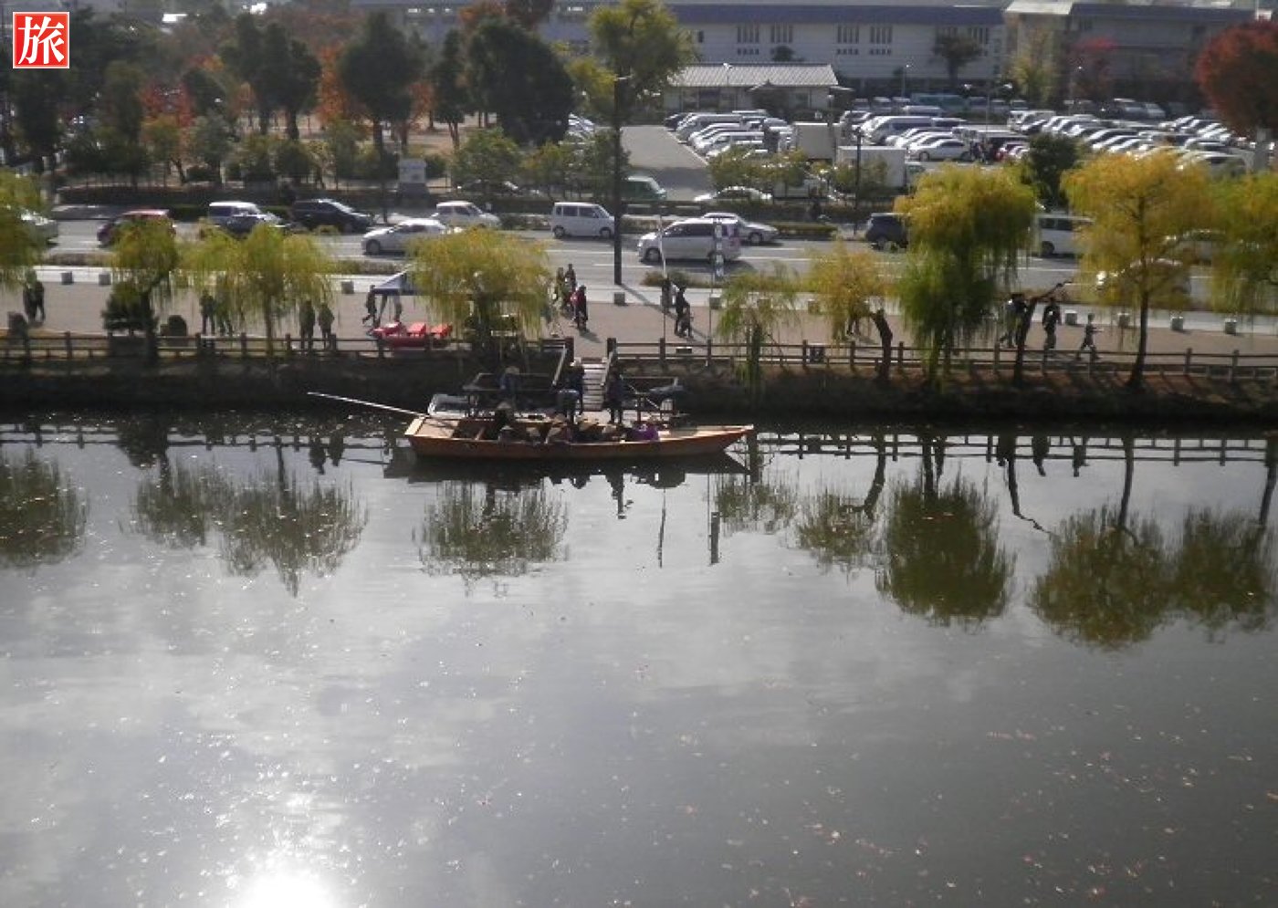 写真のお堀の和船、この時の船頭さんは女性でした。料金は大人1000円、子供500円だそうです。