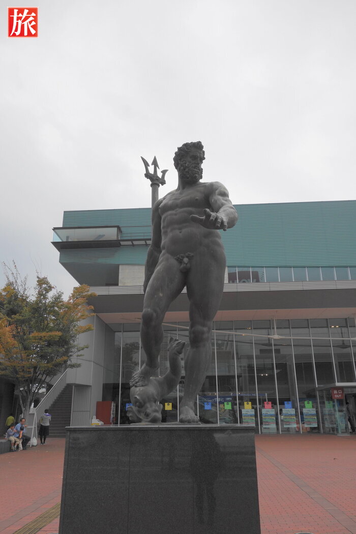 大和ミュージアム出入口です。大和ミュージアム前の海神(ネプチューン、ポセイドン)の像。戦艦「陸奥」の主錨。