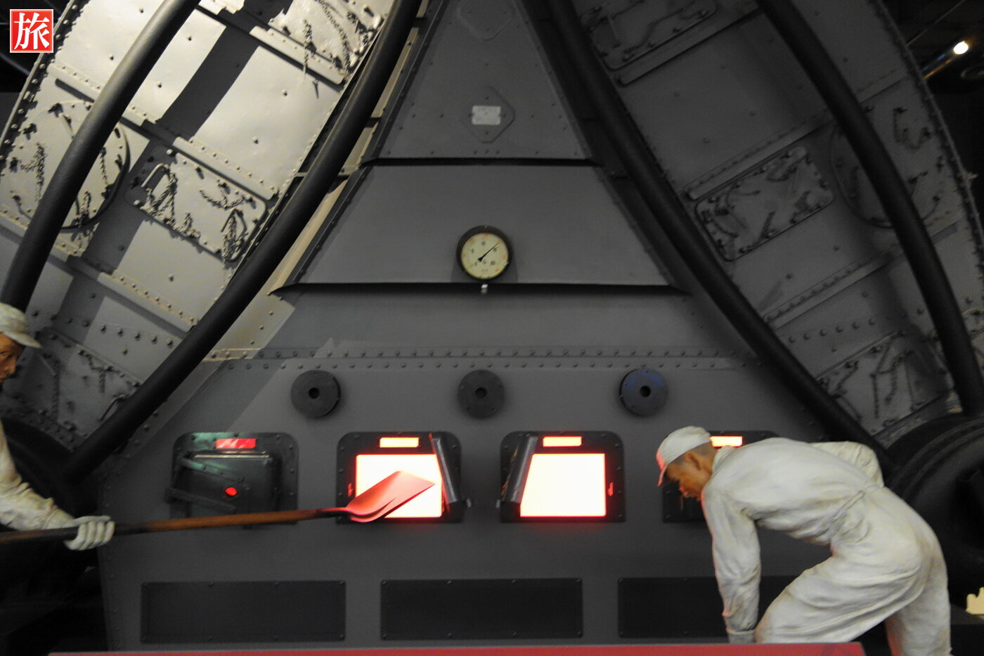 呉海軍工廠の歴史。戦艦金剛型の蒸気ボイラー実大部分模型。日本一の技術を支える工員達の様子です。一等巡洋艦「筑波」の模型。