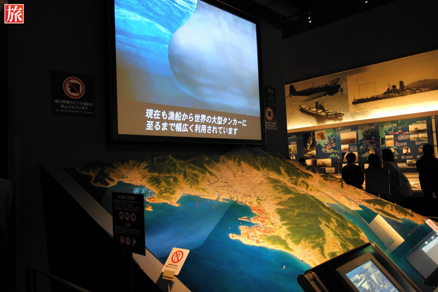 戦艦の模型。呉の歴史をパネルやビデオ等で解説しています。