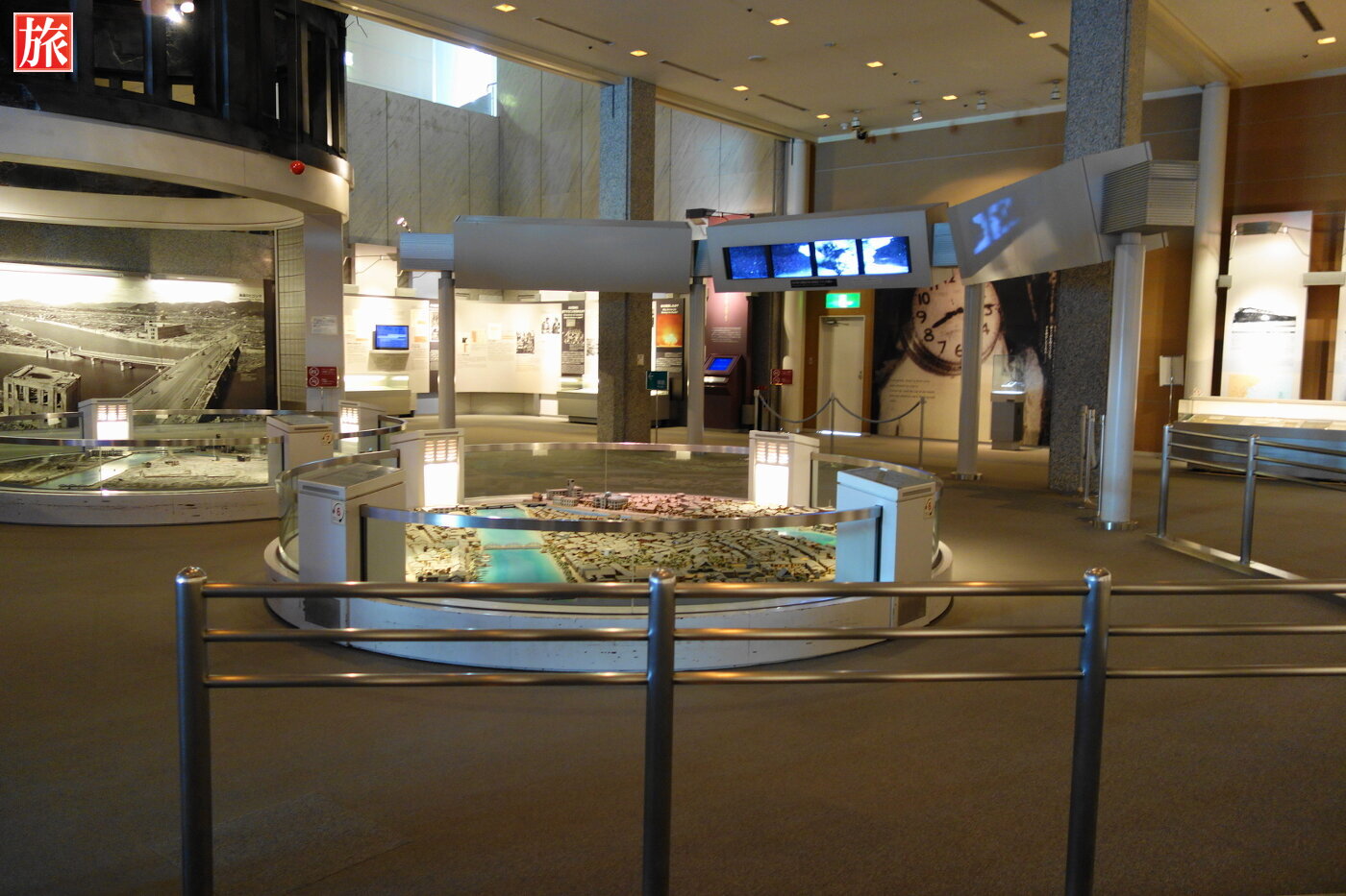 広島平和記念資料館の入口です。原爆投下時間の8時15分で止まった腕時計やジオラマ。
