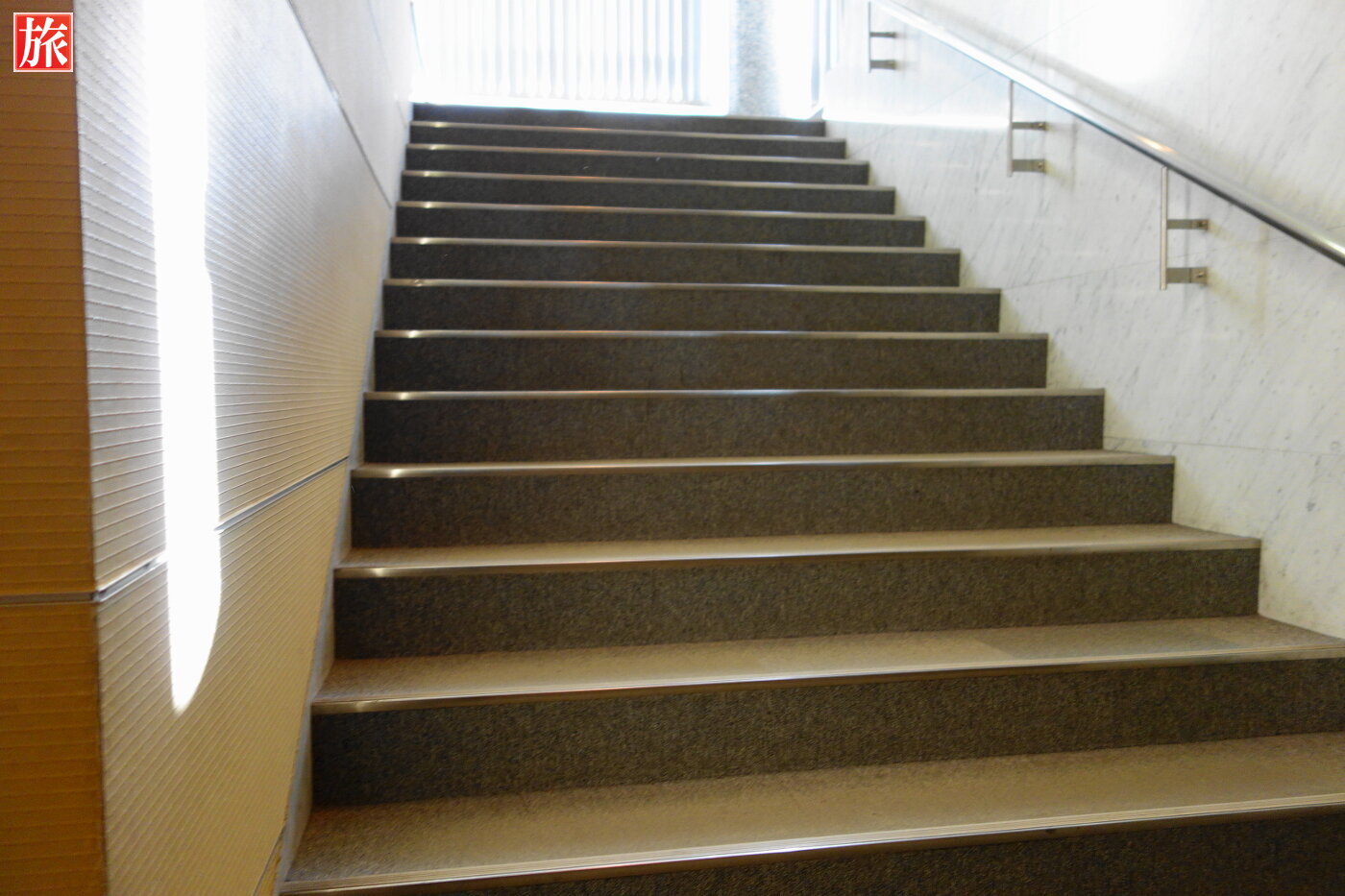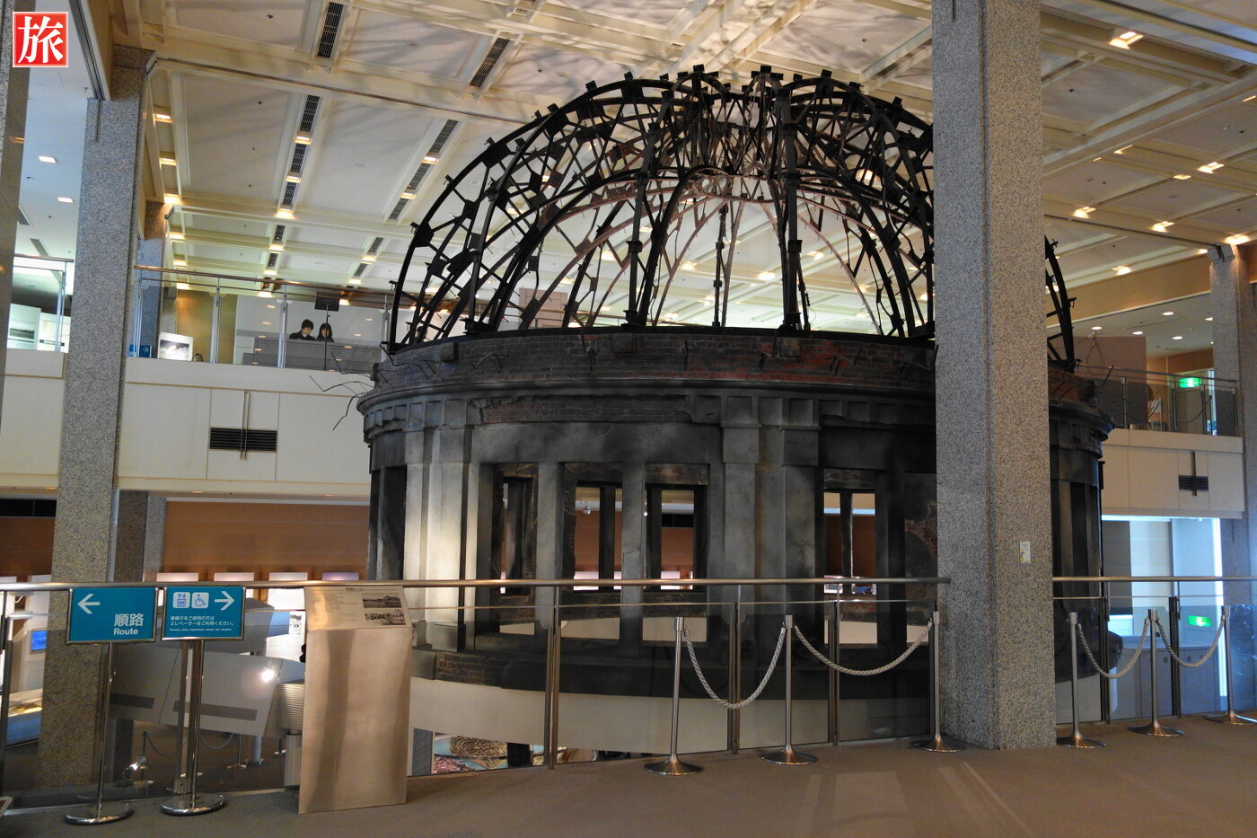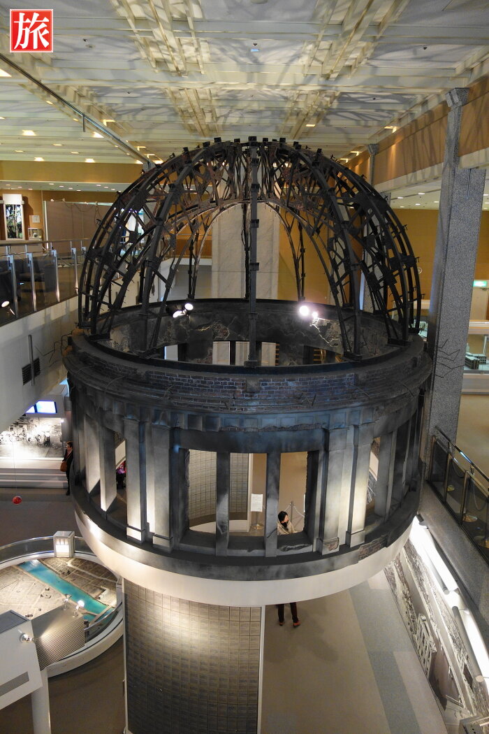 階段を2Fに上がります。原爆ドームの天井部分の模型図(73%の寸法での複製)です。3Fに上る階段。