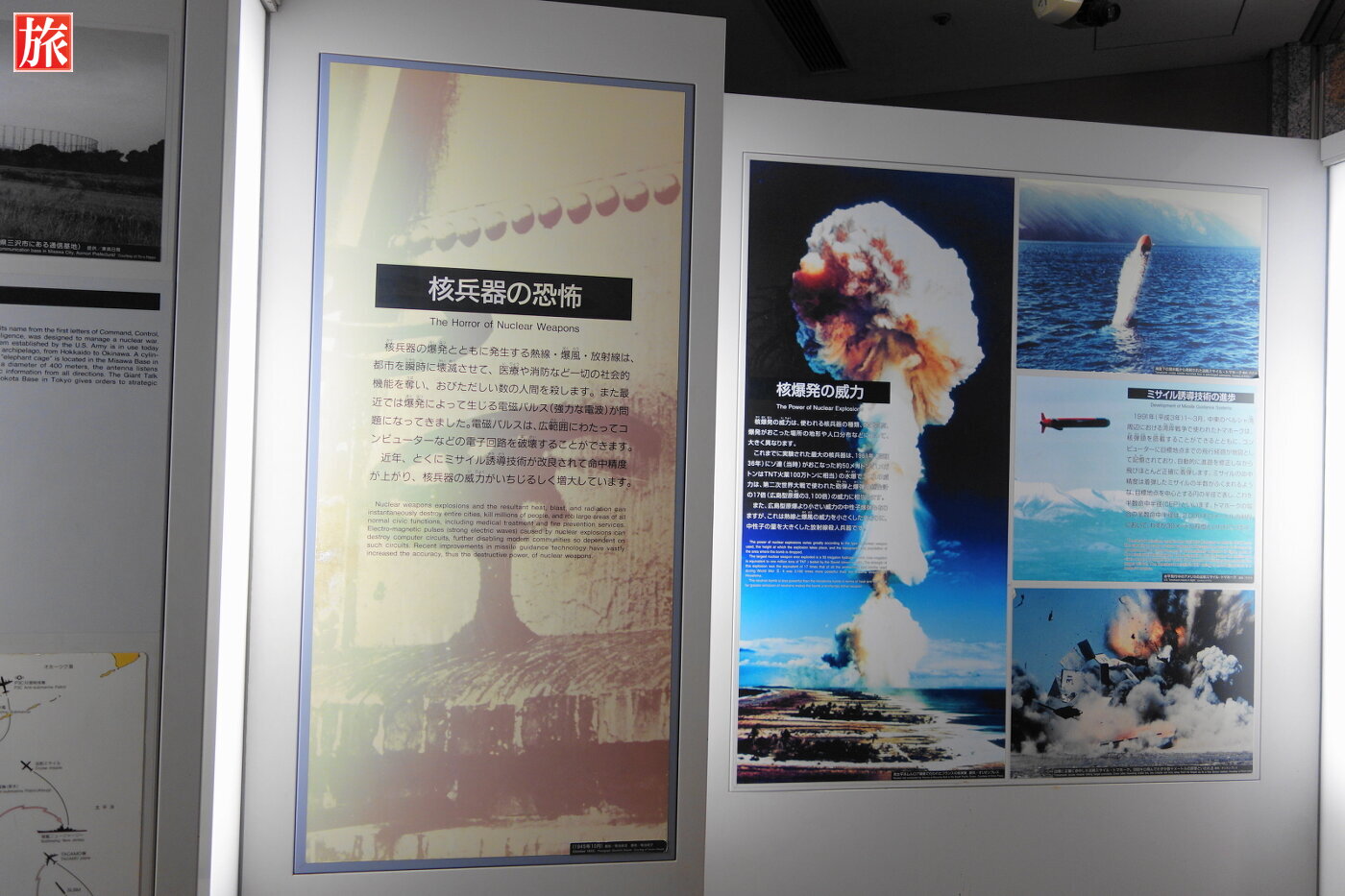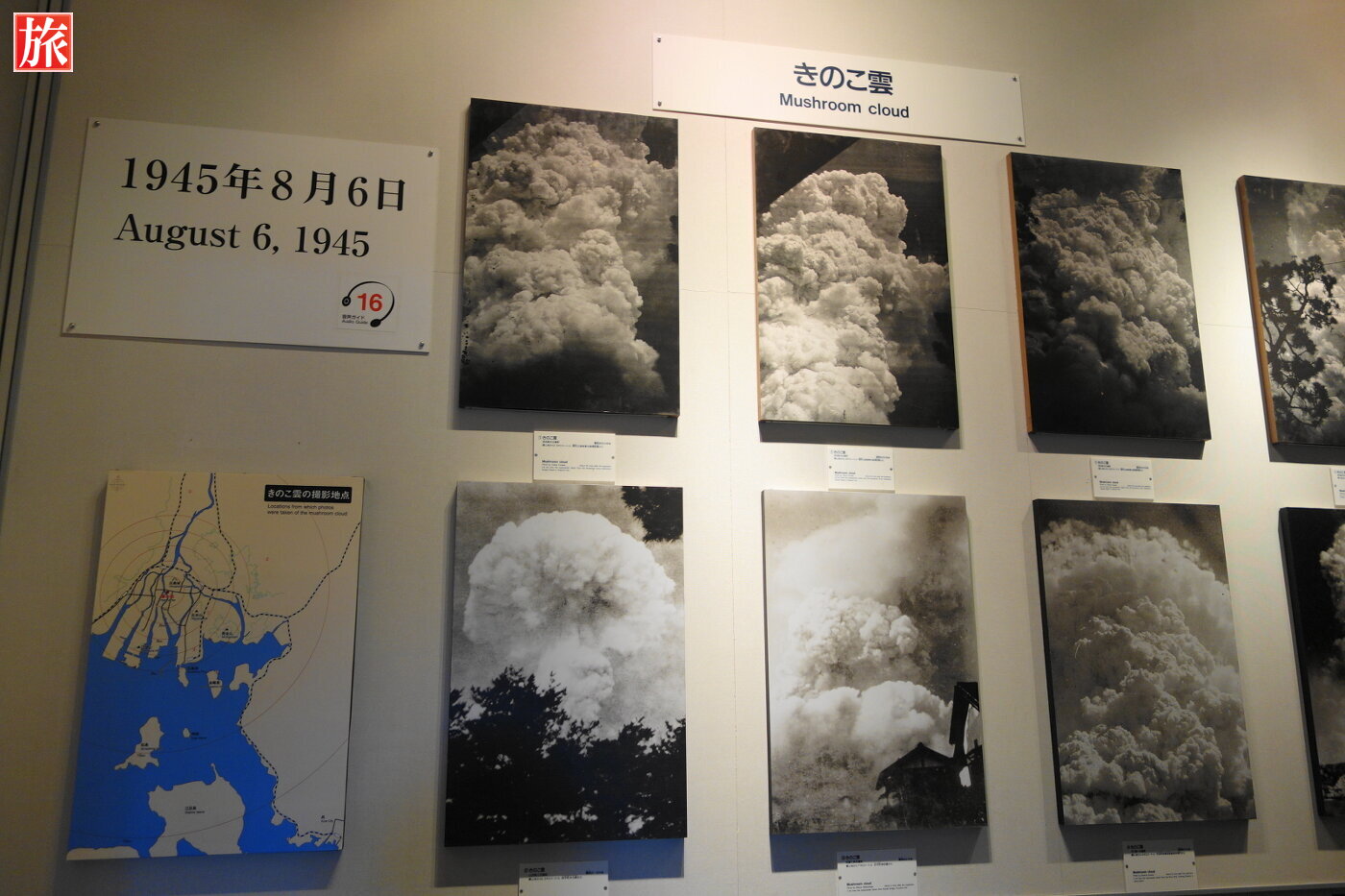 平和の願いを込めたパネル類。西側の「本館」へと進みます。きのこ雲の写真。