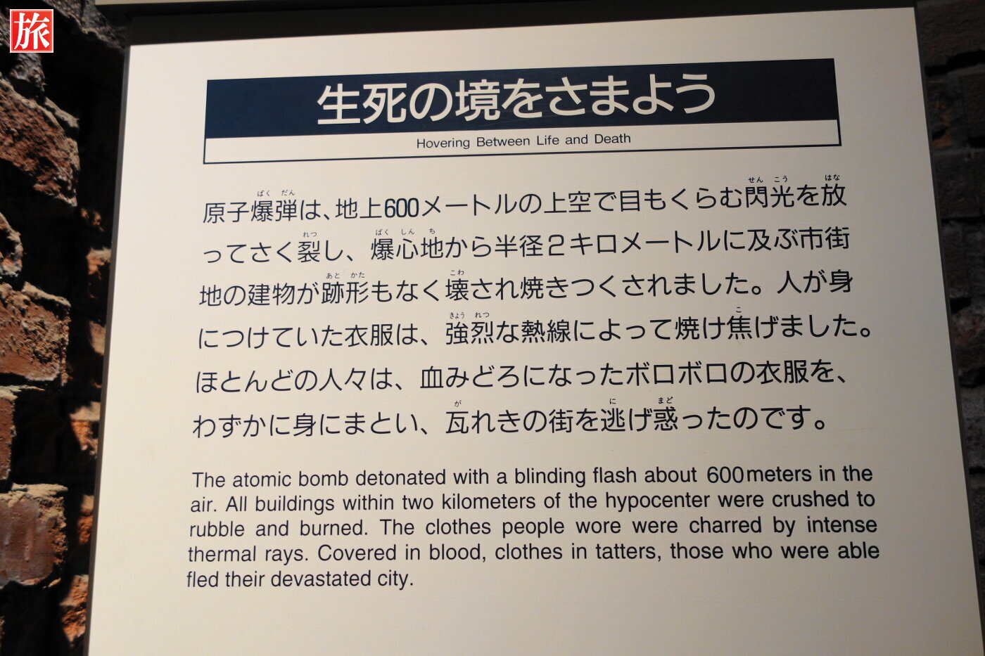 爆発点の温度は100万度以上、放射線や熱線、爆風で1945年(昭和20)の12月末までに約14万人が死亡したとされる。熱線によって石段に人の跡が影のように残った人影の石、ケロイドの標本など。