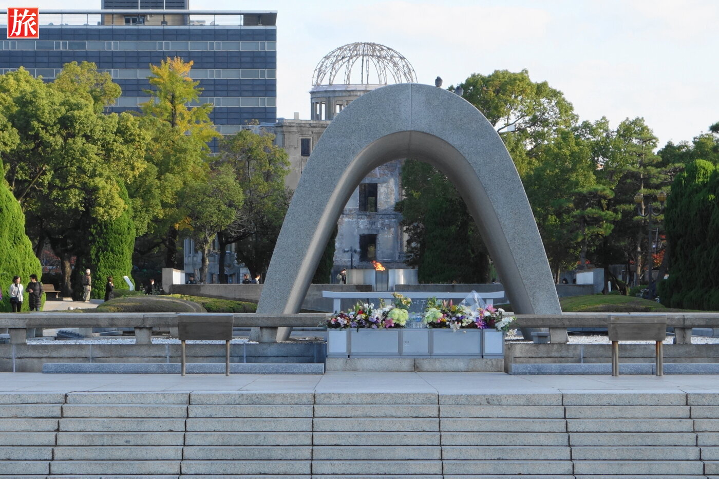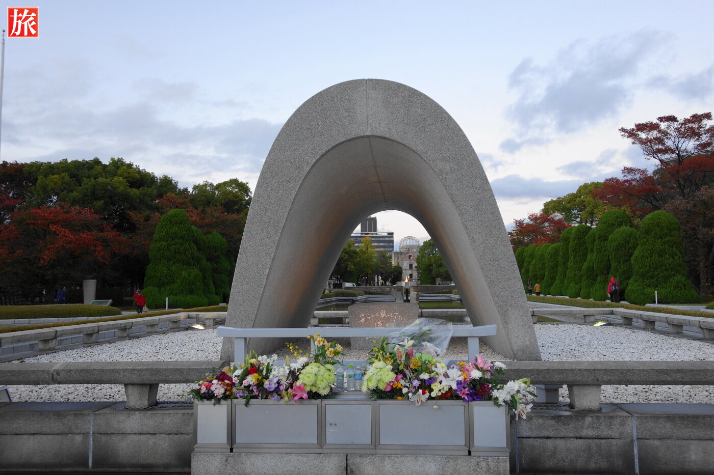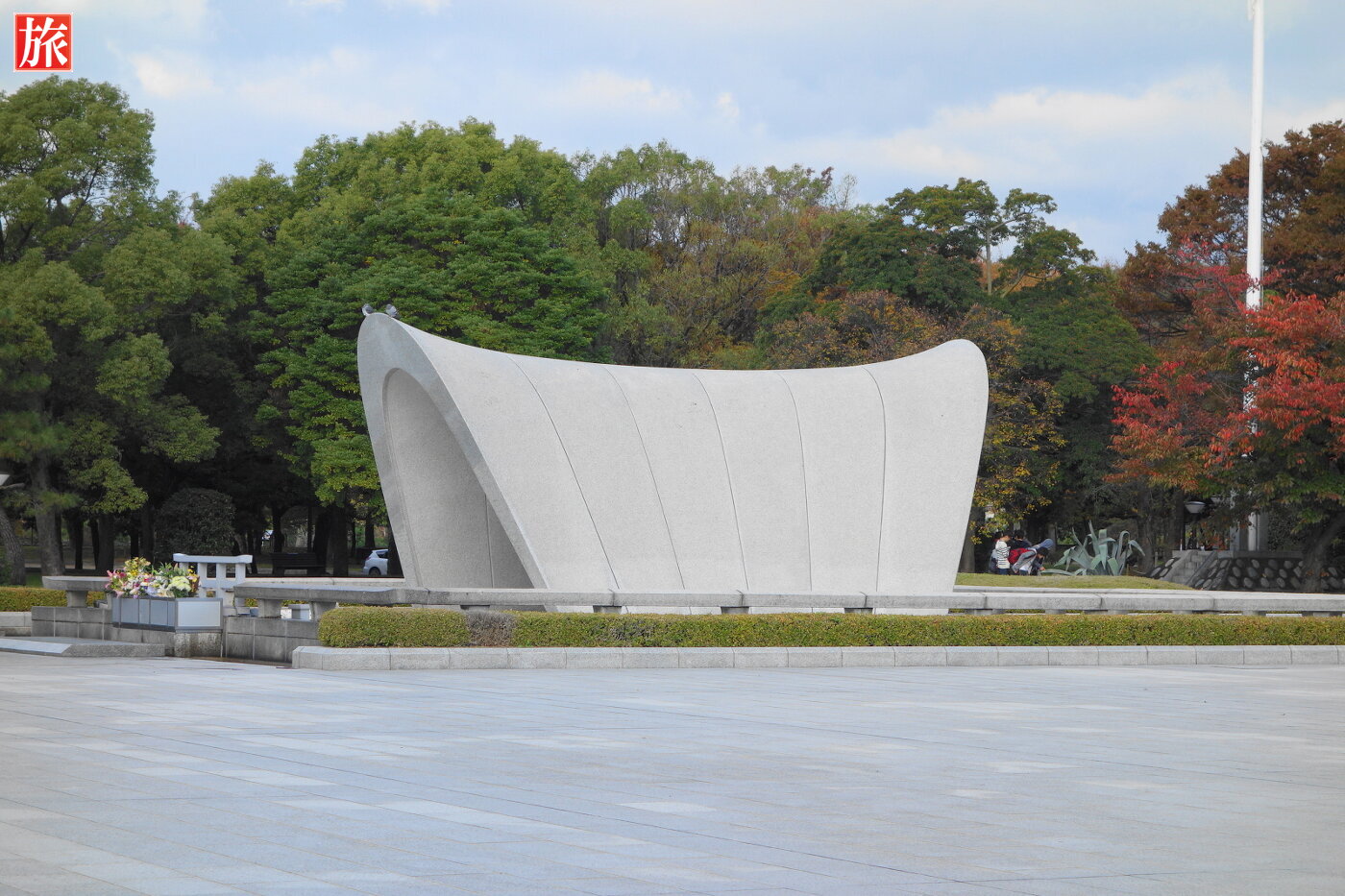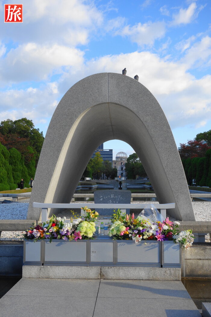 平和記念公園の中央に立っており、正式名称は広島平和都市記念碑という。原爆犠牲者の霊を雨露から守りたいという気持ちから埴輪の家型に設計され、1952年(昭和27)8月6日に建立。