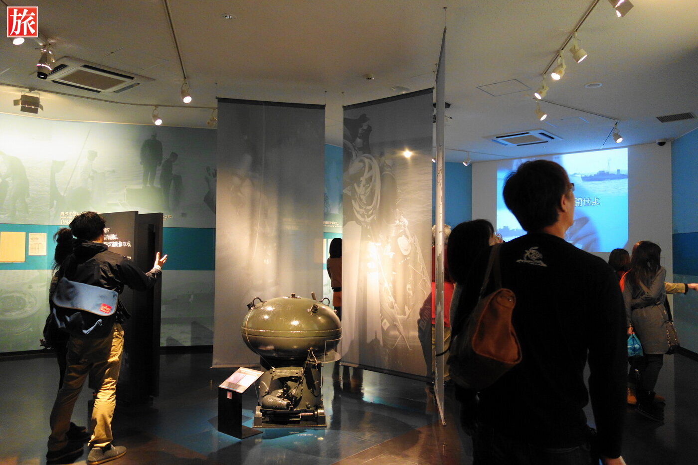 平成16(2004)年まで現役で活躍していた潜水艦「あきしお」の計器類や寝室などを、ほとんど当時のまま公開している。機雷やそれを撤去する装置、掃海の際の作業服の実物も展示。建物は地上3階建てで、館内は1階が「海上自衛隊の歴史」、2階が「掃海艇の活躍」、3階が「潜水艦の発展」という展示内容。呉駅、呉中央桟橋にも近く、道路を挟んで「大和ミュージアム」とも隣接。