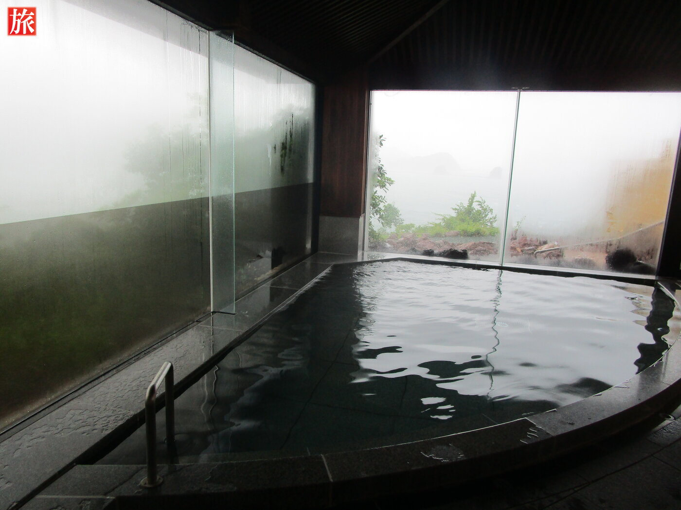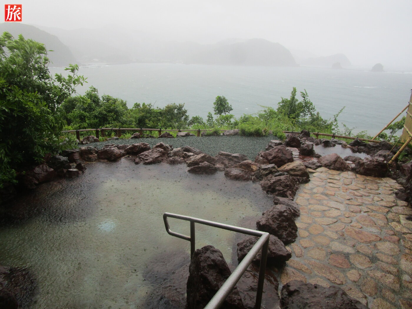 黒潮本陣の温泉は、白御影石風呂と錆石風呂の2つの大浴場があり、日ごとの男女入れ替え制。冷泉を沸かした、しっとりと滑らかなアルカリ性単純温泉。 黒潮本陣の名物『汐湯の露天風呂』は、太平洋を見下ろす場所にあり太平洋から海水を汲み上げ、それらを沸かし「汐湯」にしたものです。
