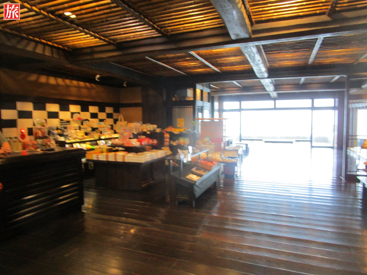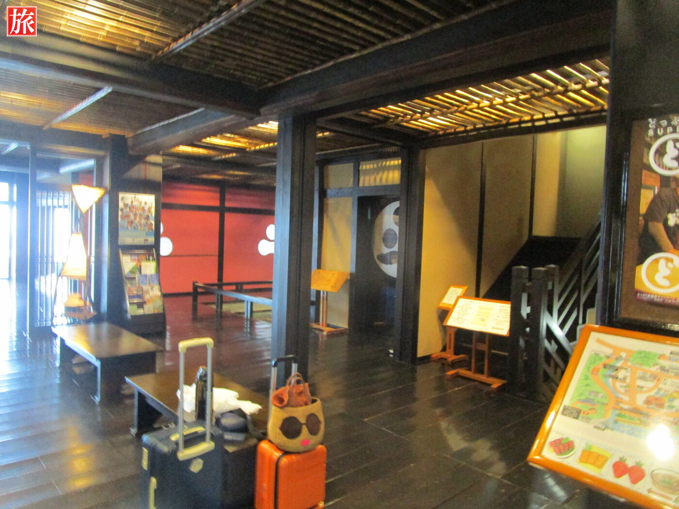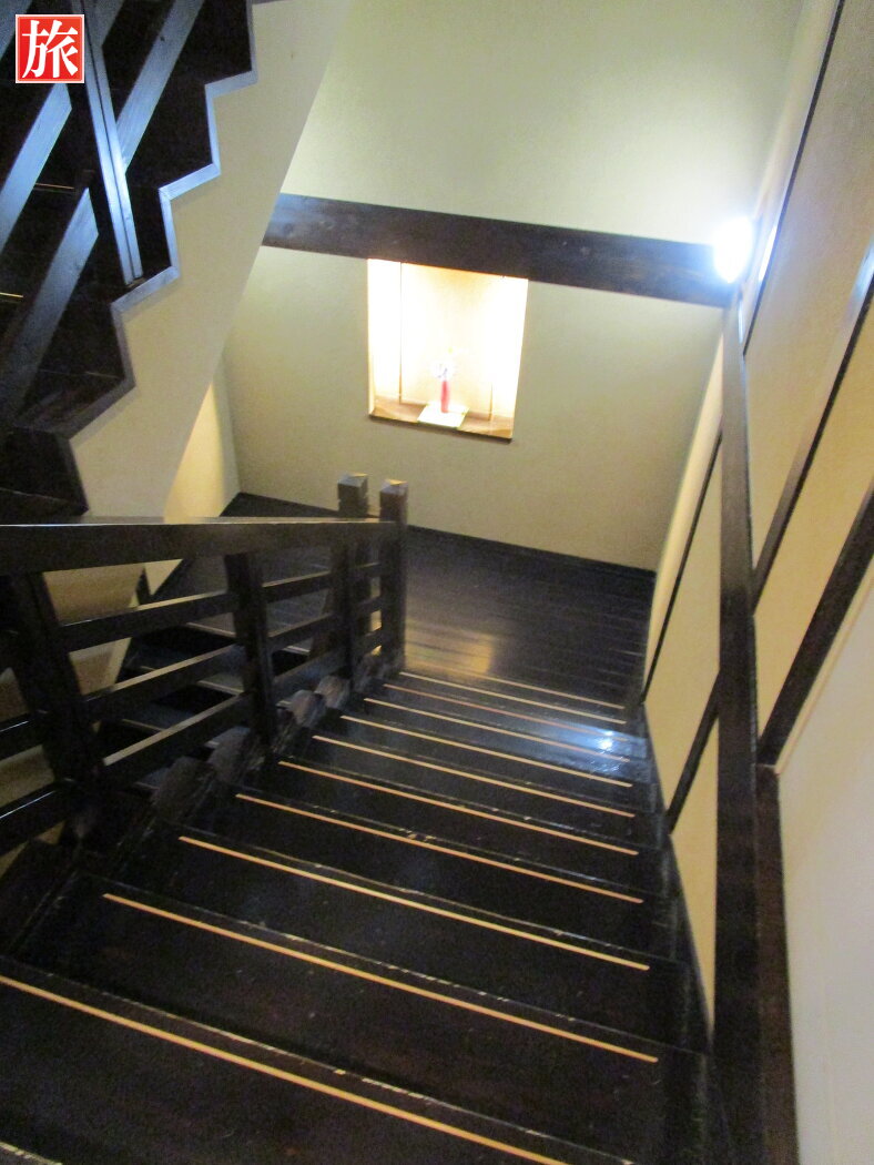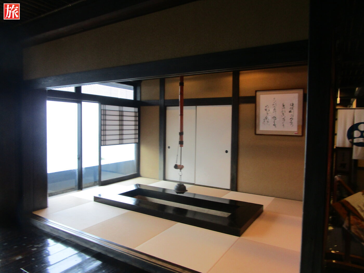 館内の様子。内部は黒光りする柱・廊下、天井も黒塗りの竹が渡されていて、重厚感漂う雰囲気。
