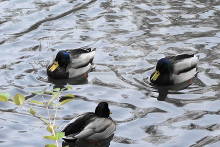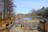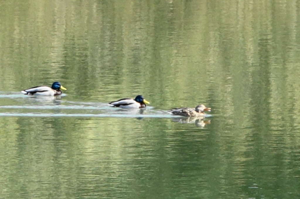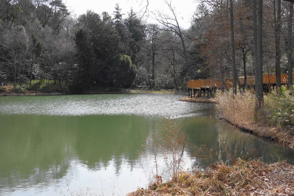 池の中央部を望む。池の南側。ウッドデッキから北方向の池を望む。鴨がいました。