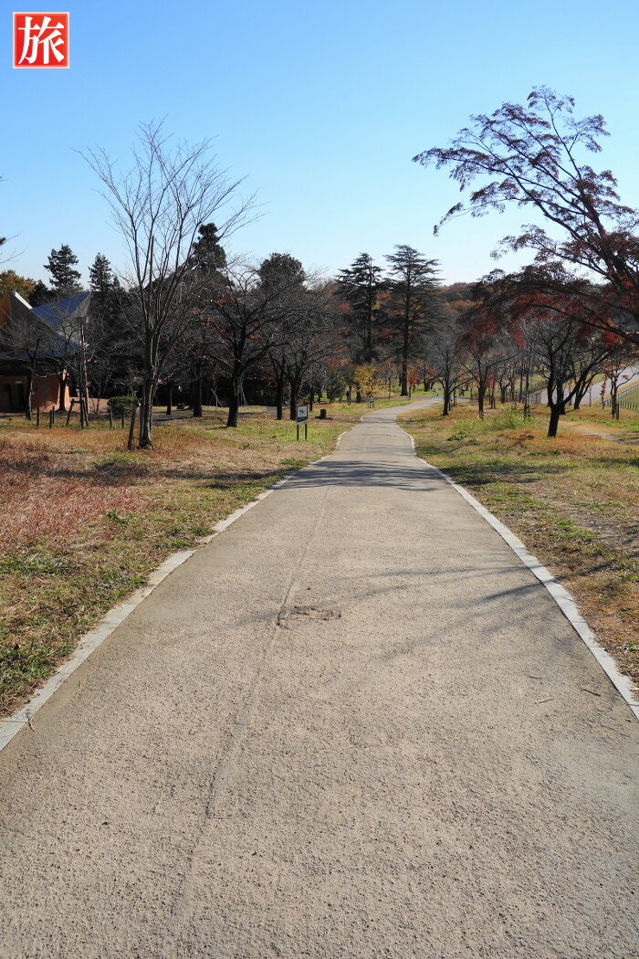 南へ進み、中ほどから西武ゆうえんち方向を見た様子です。狭山公園、遊具広場方向を望む。宅部池(たっちゃん池)方向にススキの群生がありました。