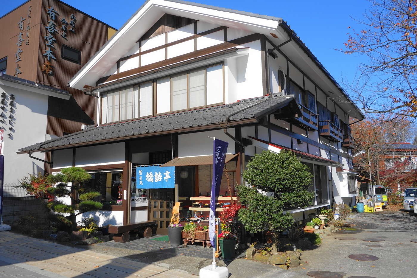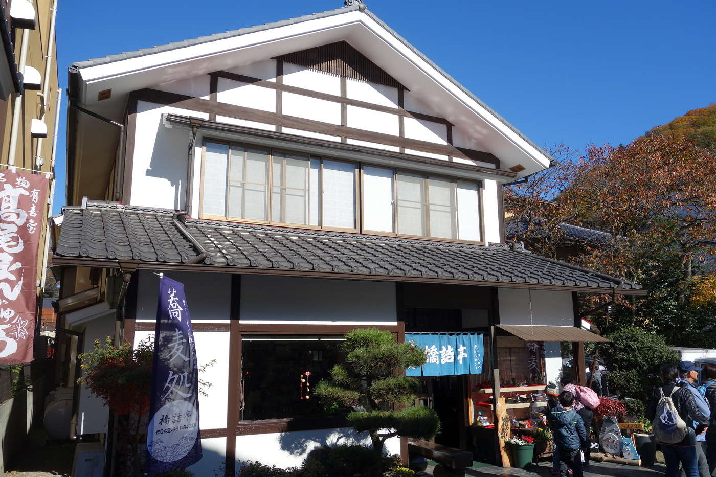 高尾山の入口表参道一番手前の右手にあり、明治45年創業でとろろソバはおいしいと評判。