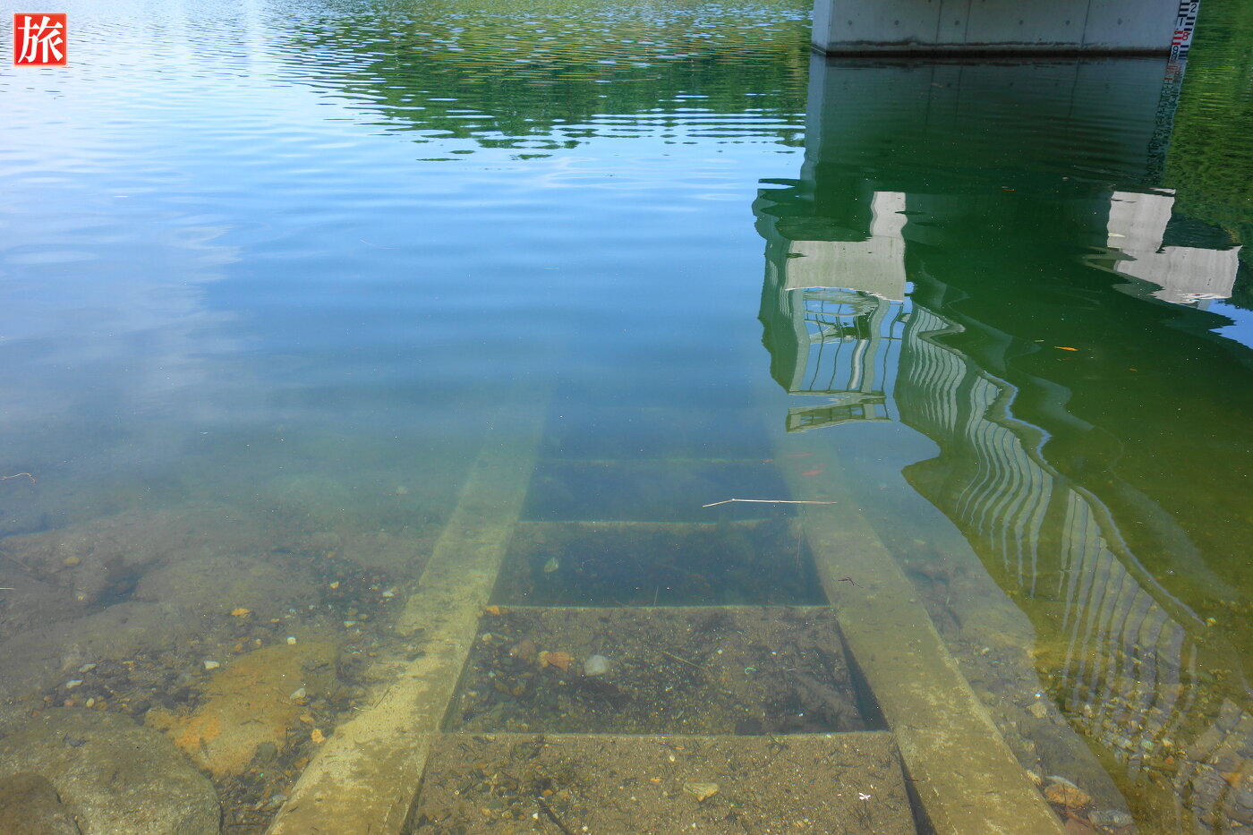 湖の南側に移動・・・水田灌漑用のため池のようで、水位の調整用ハンドル(バルブ)でしょうか?湖に続く階段、吸い込まれそう・・・