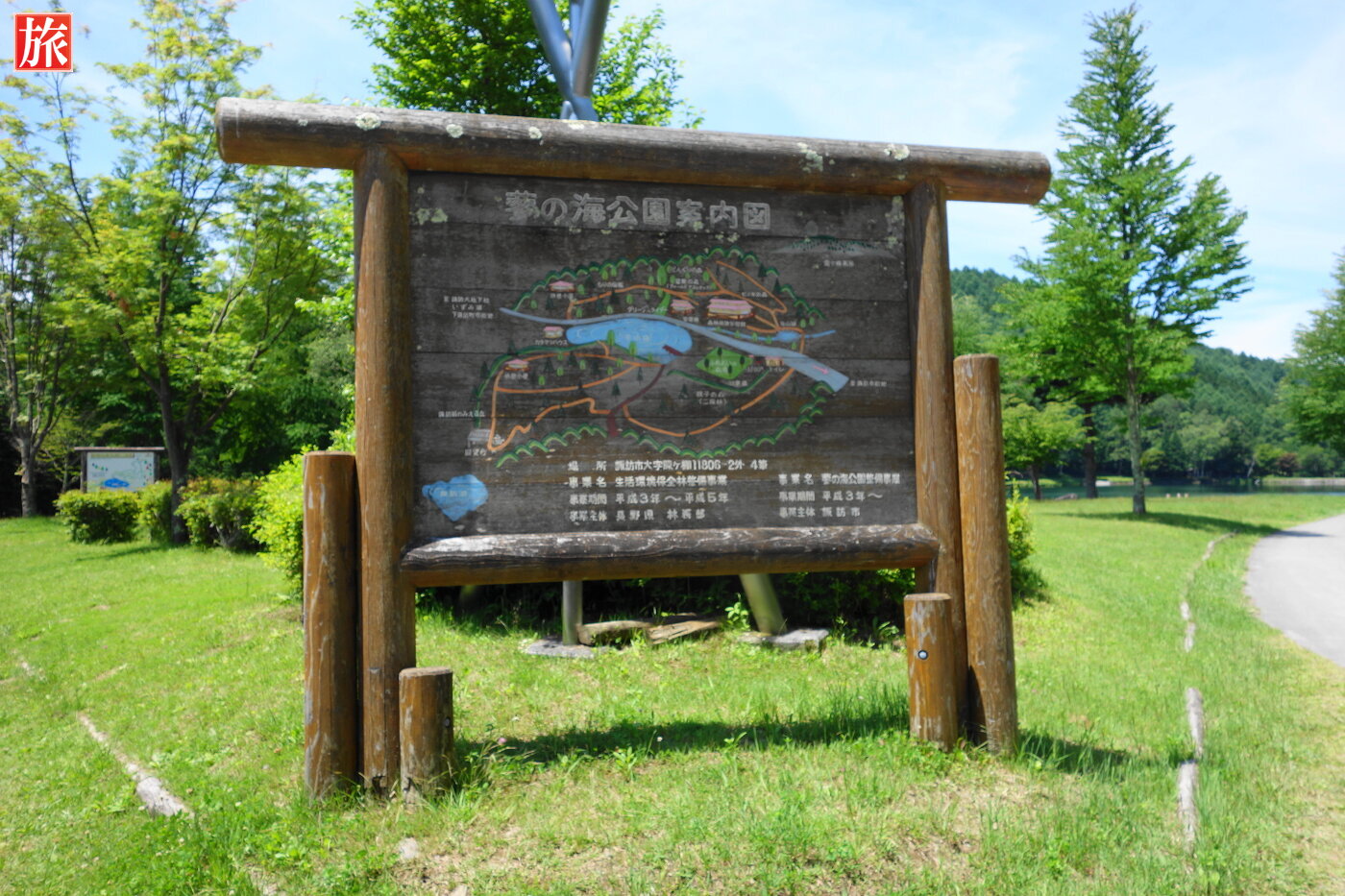 無料駐車場付近にあった蓼の海公園の案内図。すぐ先に蓼の海がありました。