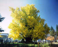 樹齢800年余と推定され、建久年間(1190~1199)会津四家の1人、久川城主初代河原田成光が東館を築き重臣を住まわせた折りに植えた庭樹と言い伝えられています。樹高35m、根回り16m、目通り11mあり、樹齢約800年と推定される福島県下随一の老樹の紅葉する姿は神々しいものがある。