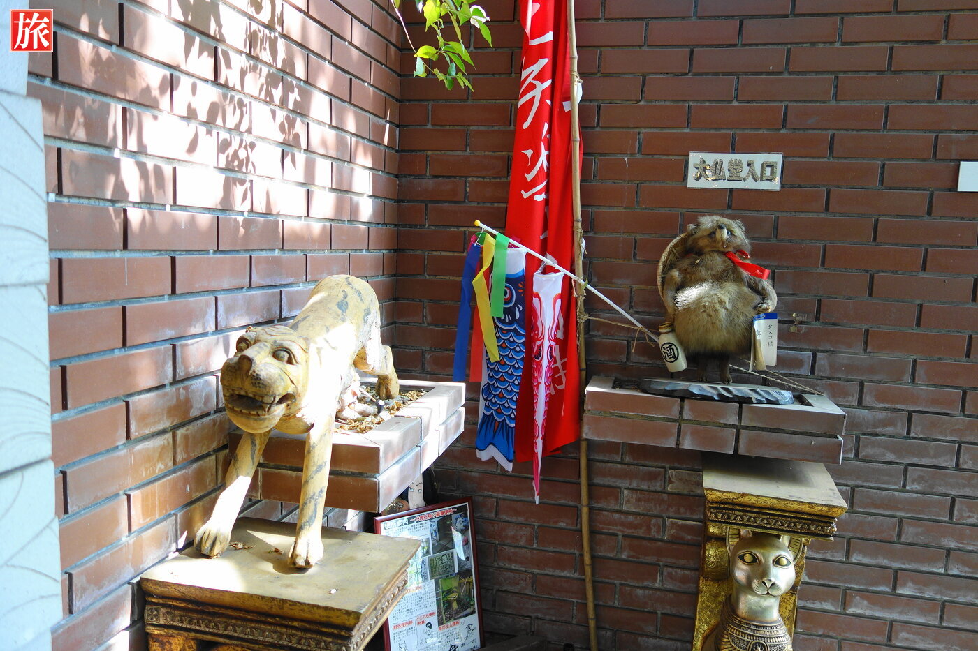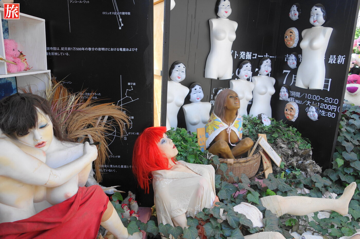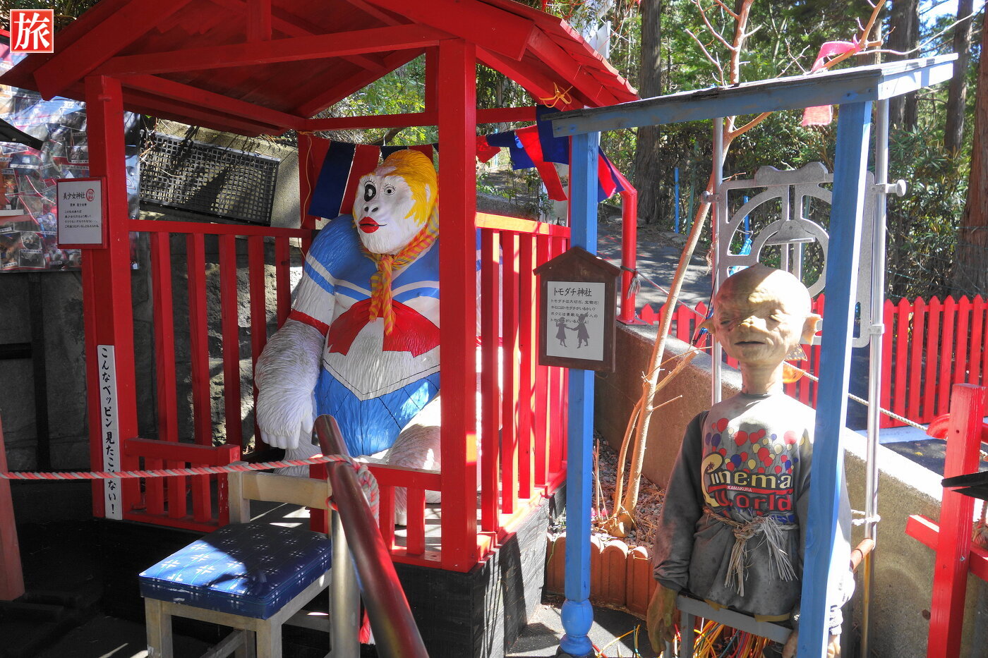 奇妙な人形達がお出迎え!入場受付に続くエントランスならぶ招き猫堂・トモダチ神社・・・