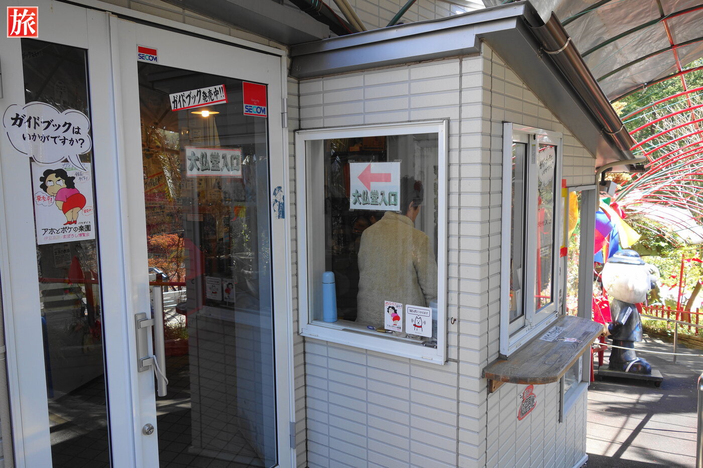3つの展示室(密林にたたずむ大仏と世界古代文明遺跡・昭和の時代通り抜け・魔界神社祭礼の夕べ)から構成された1つ大仏堂入口が入場受付になっています。入場チケット大人一人1200円・公式HP上の割り引券を利用で100円引きとなりました。