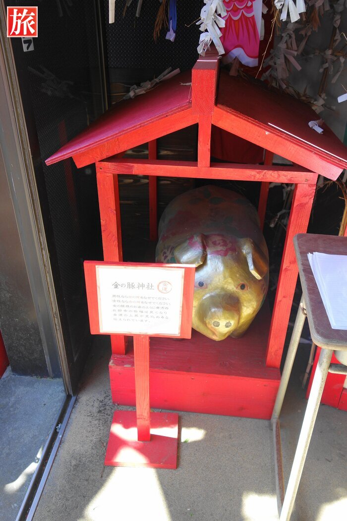 3つ目の展示室「魔界神社祭礼の夕べ」 入口には金の豚神社がトン座。安井大サーカスの動物達!
