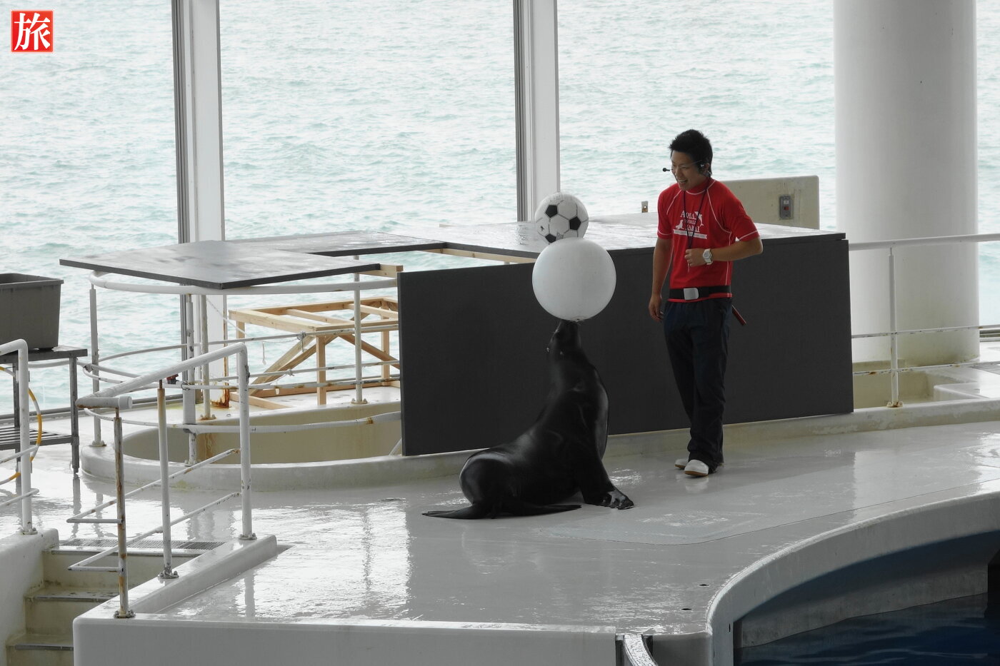 4階 オーシャンシアターではショーが行われていました。愛嬌たっぷりのアシカが色々な芸を披露。ジャンプするイルカ。