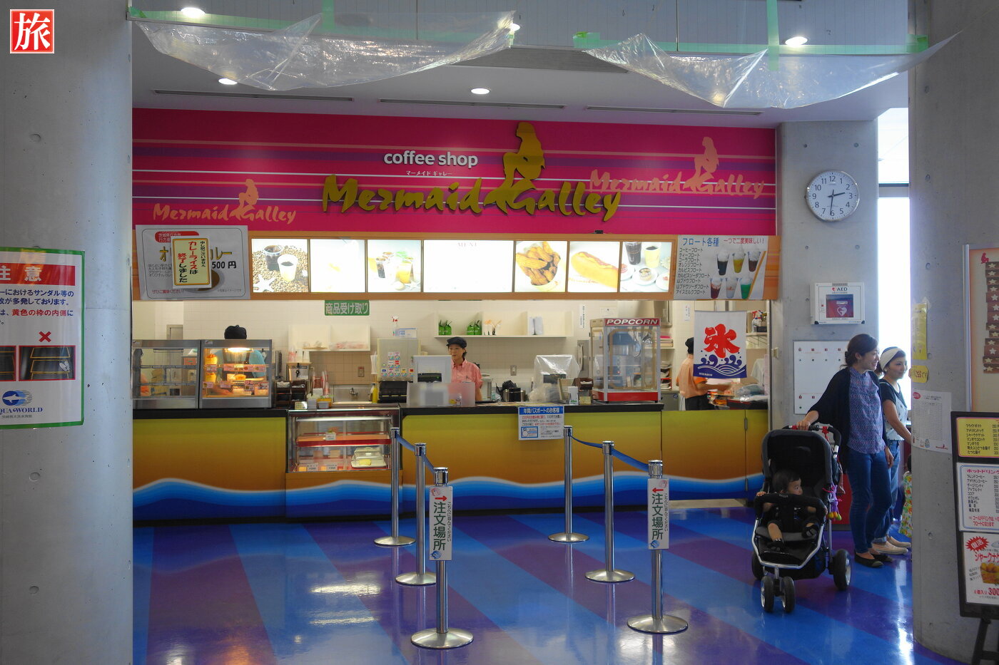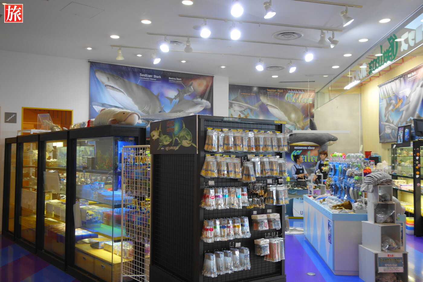オーシャンゾーンの野外ではペンギンさんが出迎えてくれました。ミュージアムゾーン近くにあるコーヒーショップとお土産グッズ店。