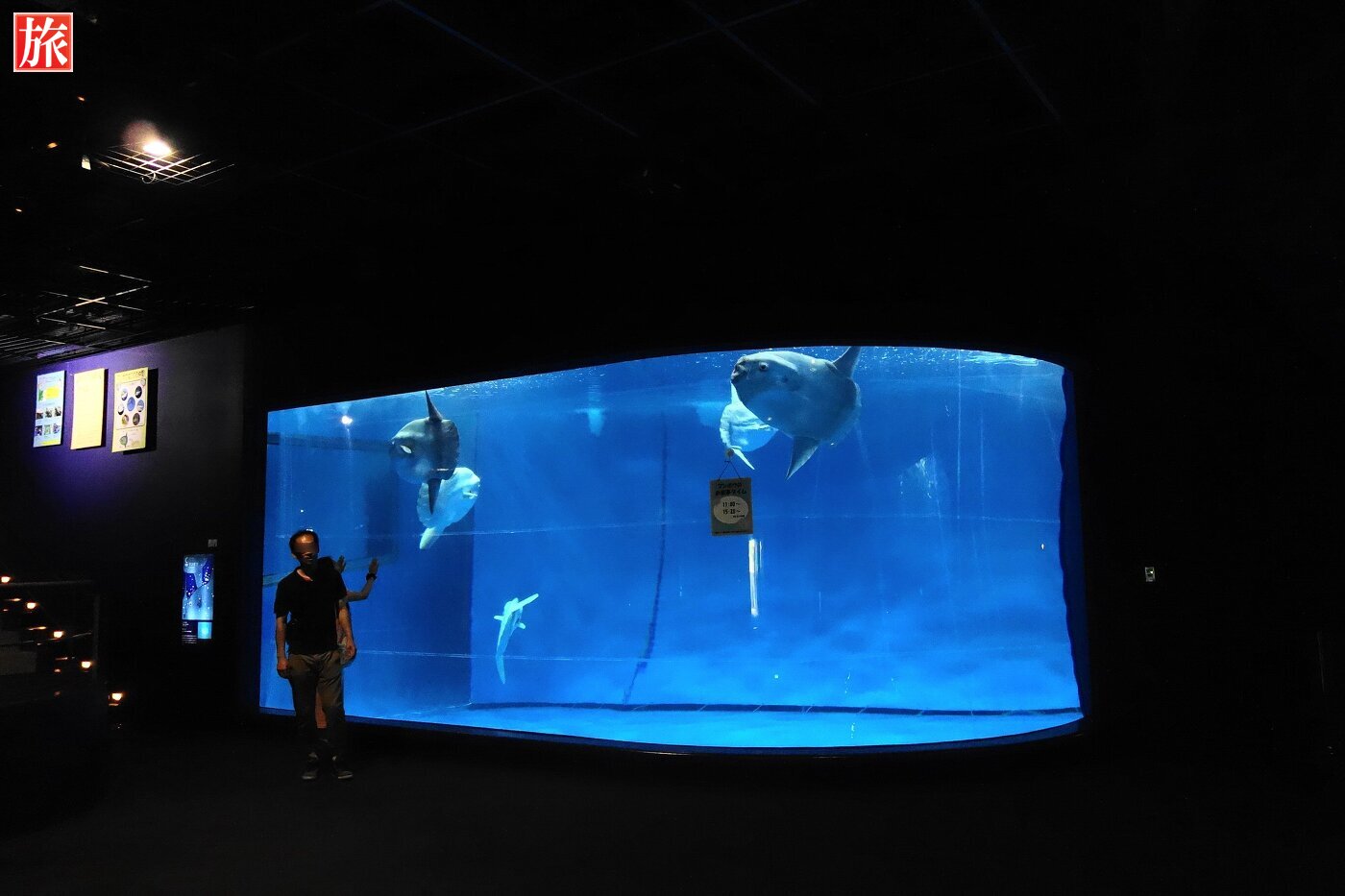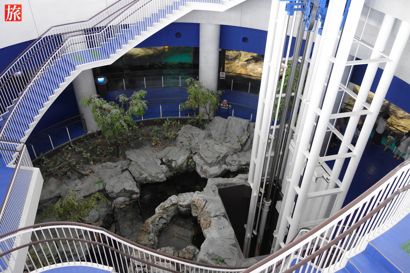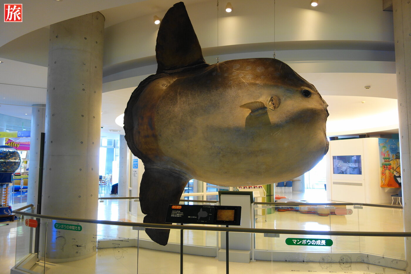 世界最大級のマンボウ剥製(全長3メートル)。3Fのミュージアムゾーンからエレベータで展望ホールに向かいました。展望ホールから下を眺めた様子。